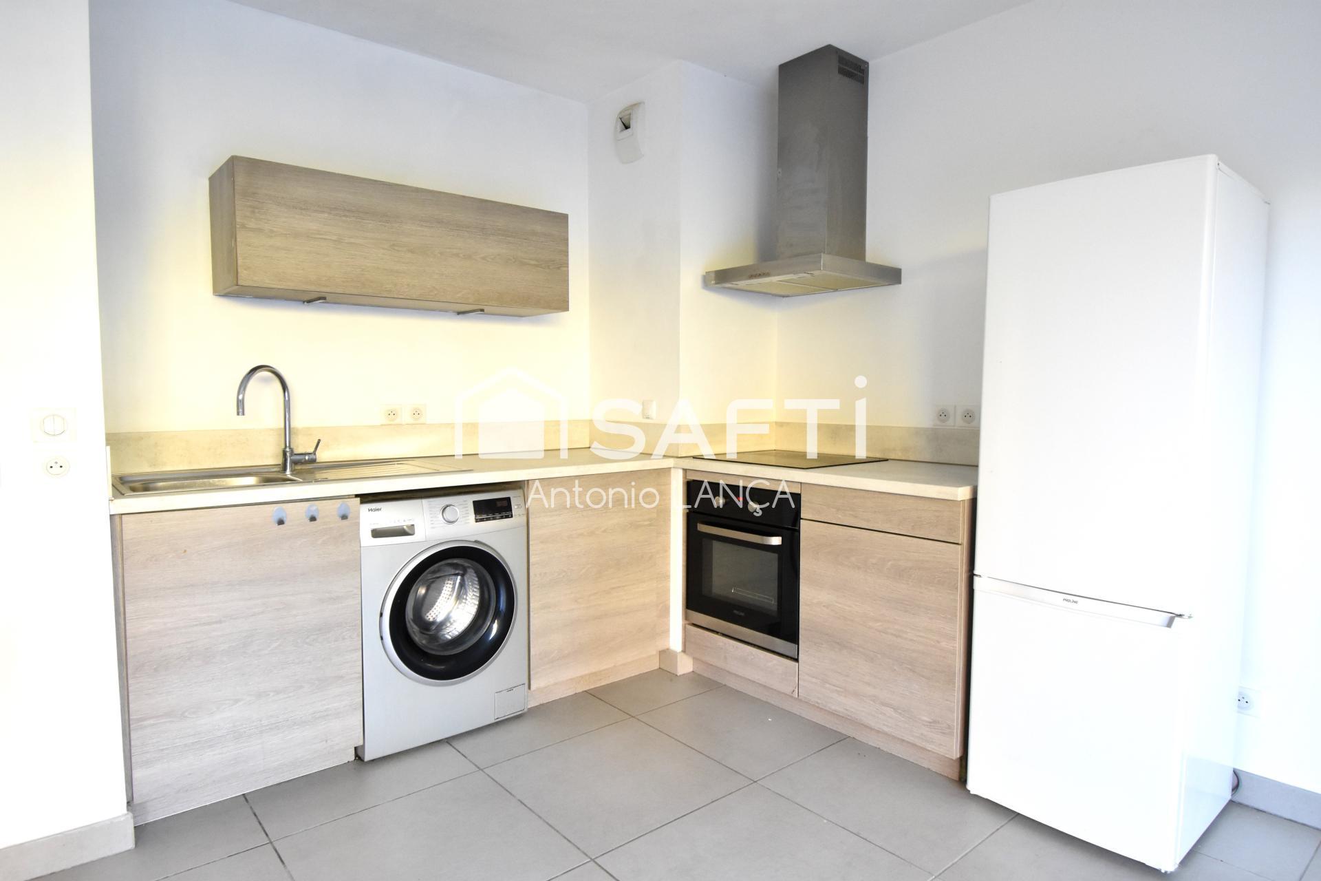 À l'intérieur, on trouve un appartement de type T2 composé d'un salon-cuisine aménagée et équipée, une belle chambre, une salle d'eau, une buanderie et un WC, idéal pour un couple ou une personne seule.
