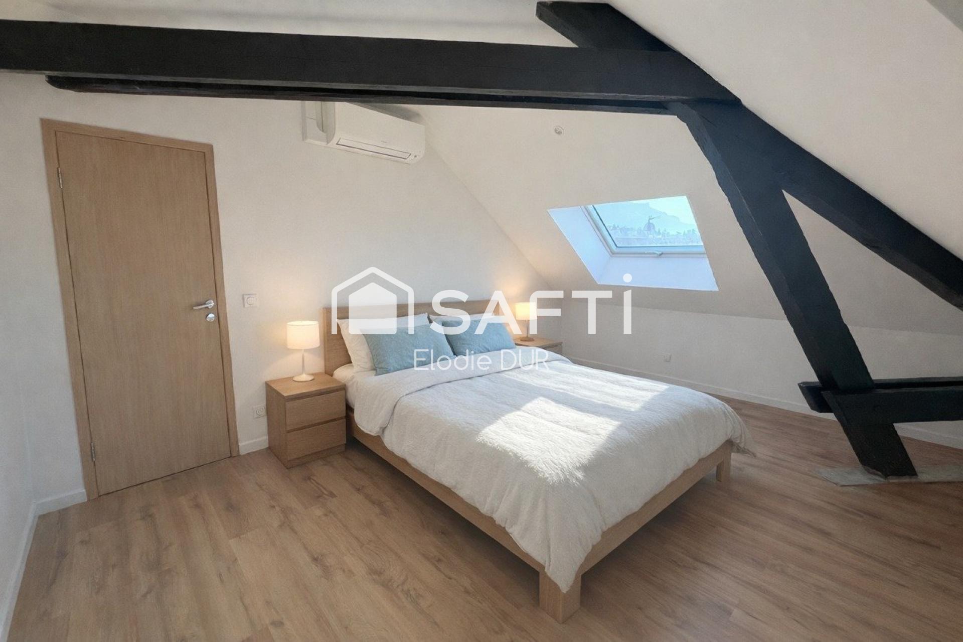 À l'intérieur, ce bel appartement de 62 m² (95m² au sol) au 3ème étage sans ascenseur a été entièrement rénové. Doté de 3 pièces, dont 2 chambres, il offre un confort de vie optimal avec son chauffage au sol (hydraulique avec chaudière électrique) et une pompe à chaleur réversible AIR/AIR. Idéal pour un foyer familial, il se distingue par ses finitions de qualité et ses aménagements modernes, offrant un cadre de vie chaleureux et fonctionnel, idéal pour profiter pleinement de la vie à Aix-les-Bains.