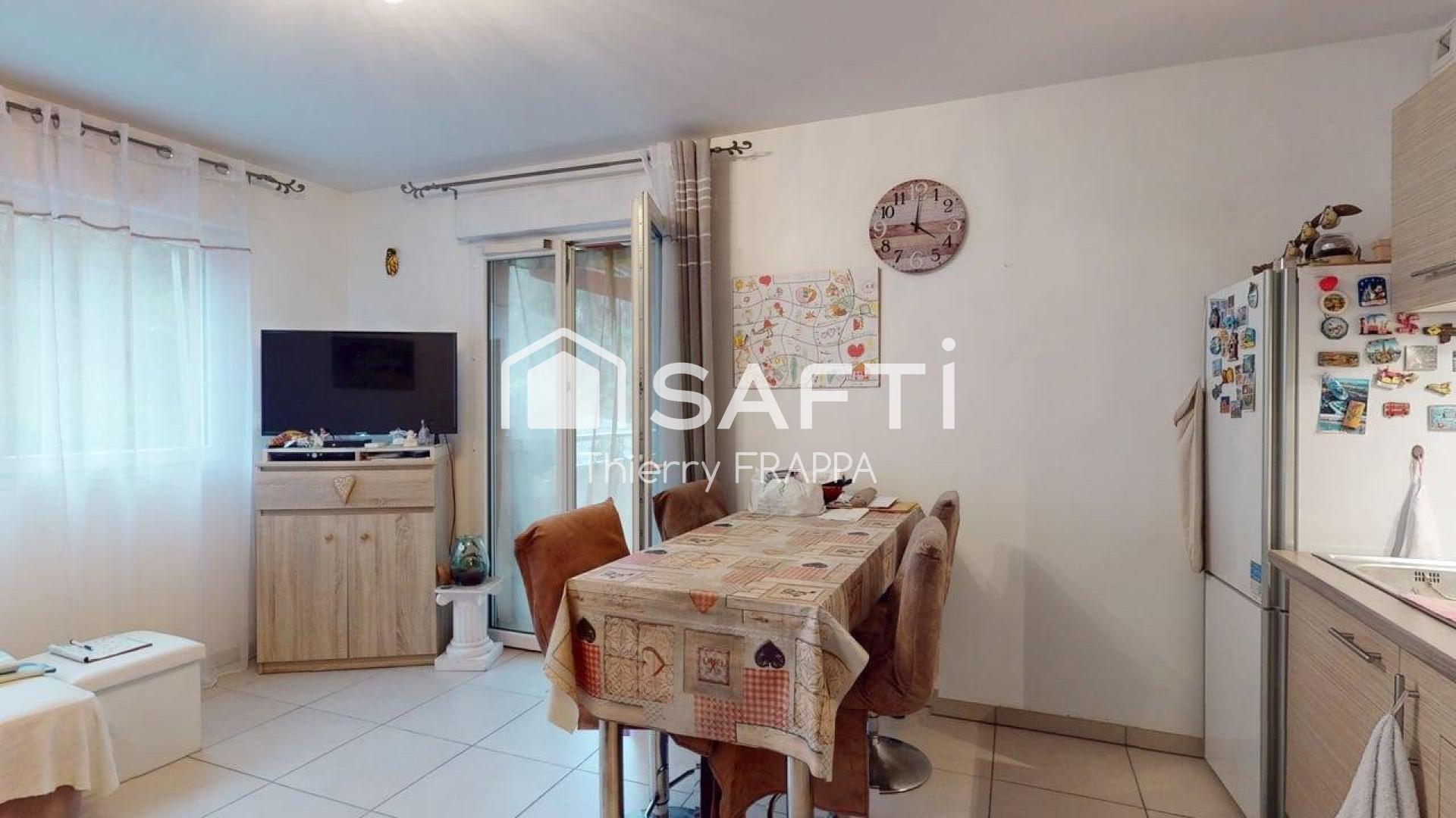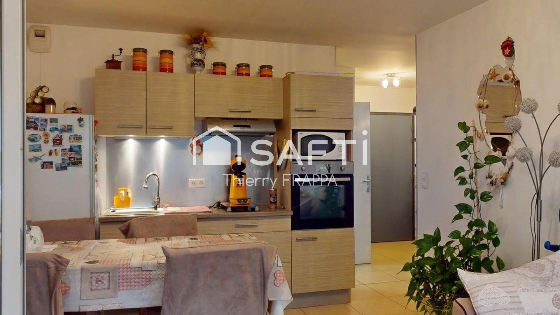 En été comme en mi-saison, c'est un vrai prolongement du séjour — petit-déjeuner, apéro, lecture, tout s'y fait naturellement.La cuisine est déjà aménagée et équipée : meubles, four, hotte — rien à racheter en arrivant. La chambre est indépendante, avec une vraie séparation jour/nuit.