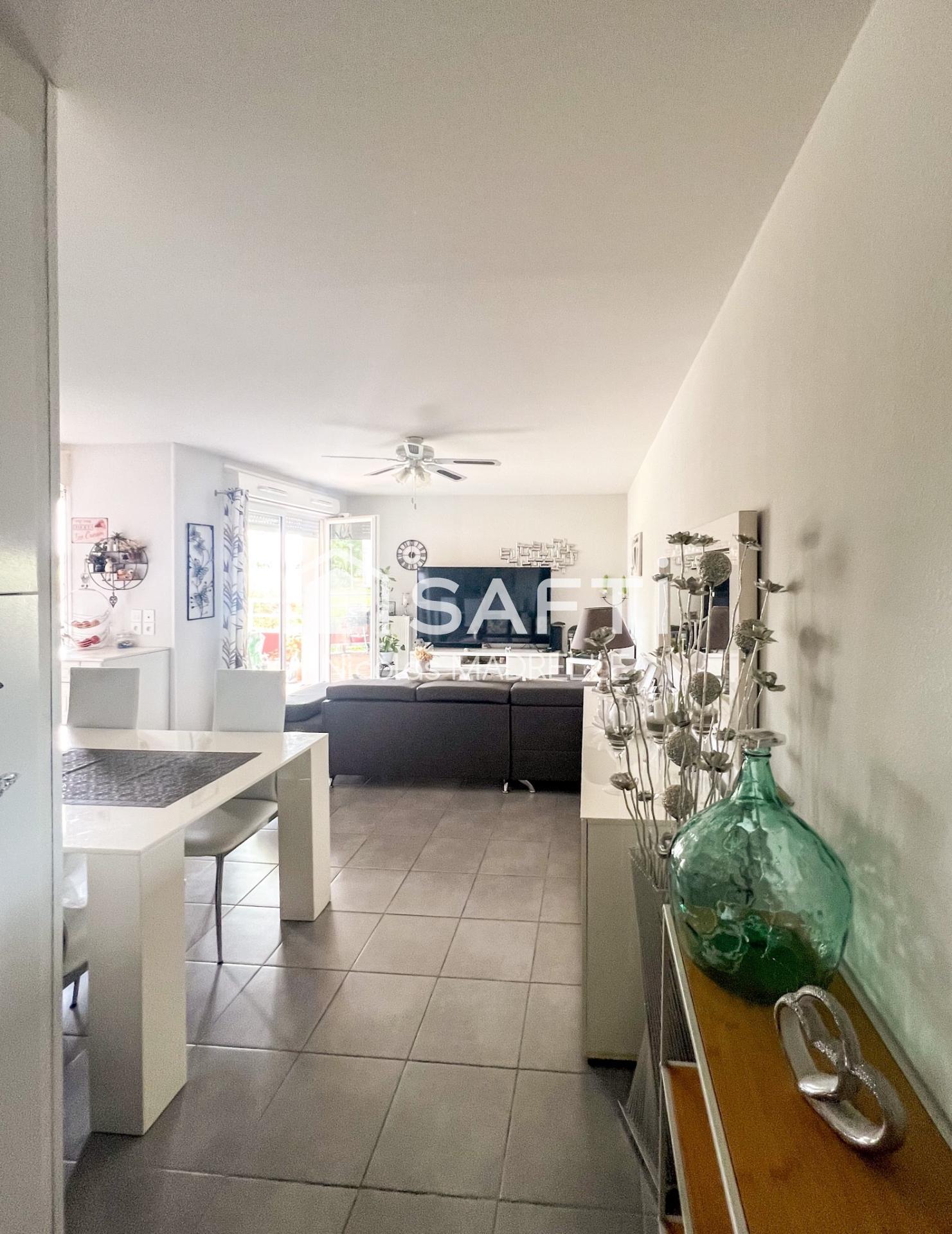Nicolas MADRELLE - SAFTI présente à 20 min de Bordeaux, un appartement 3 pièces avec terrasse et vue dégagée à AMBÈS (33810). Situé dans une résidence calme et bien entretenue, découvrez ce charmant appartement de plus de 68 m2 alliant confort et cadre de vie paisible. Dès l’entrée, vous serez séduit par une belle pièce de vie lumineuse, ouverte sur une cuisine équipée, parfaite pour vos repas en famille ou entre amis. Prolongez ces moments sur la terrasse couverte, orientée vers un environnement naturel préservé, sans vis-à-vis, un vrai havre de paix. L’espace nuit se compose d’un vaste dégagement avec rangements, deux chambres avec placards intégrés, salle de bain fonctionnelle avec coin buanderie et WC indépendant. Le tout est complété par deux places de parking - dont 1 PMR - privatives et numérotées.