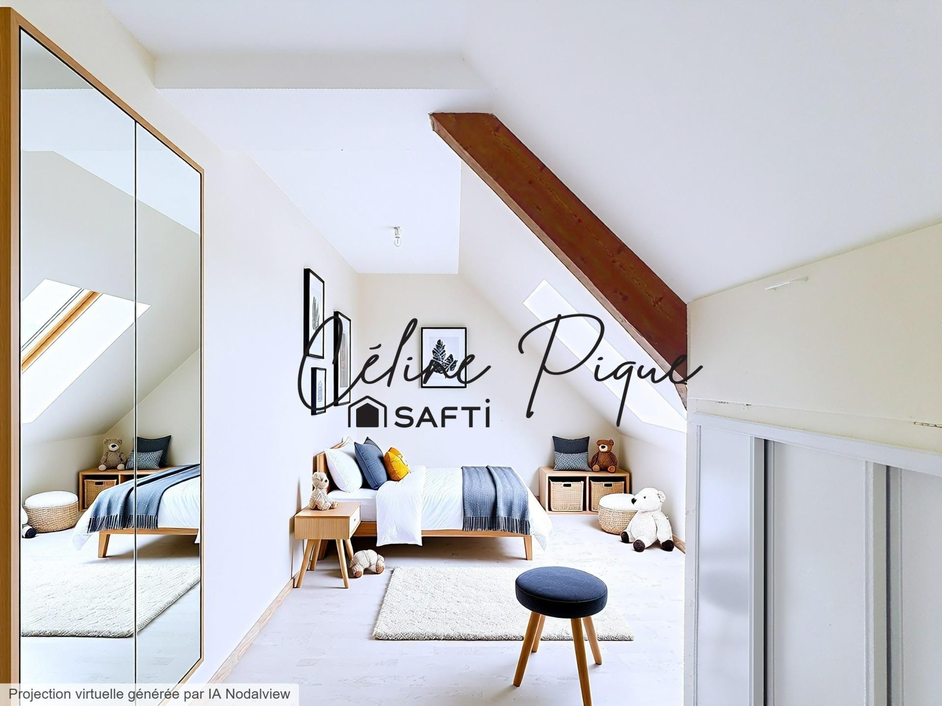 À l’étage, vous découvrirez une belle chambre sous les toits, offrant un espace cosy et chaleureux.