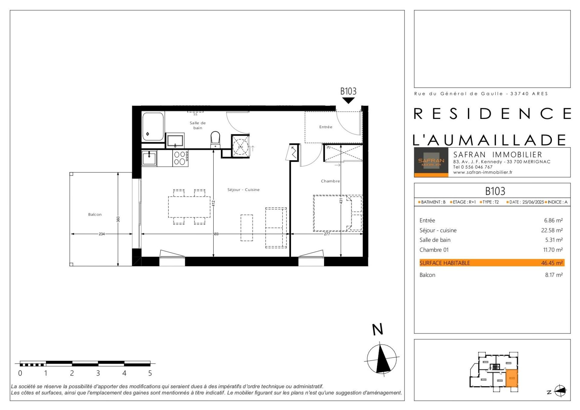 Votre futur chez-vous vous attend ! Découvrez ce magnifique T2 de 46.45m² idéalement situé au 1er et dernier étage doté d'un balcon de 8.17m² au sein d'une petite copropriété de 30 lots.