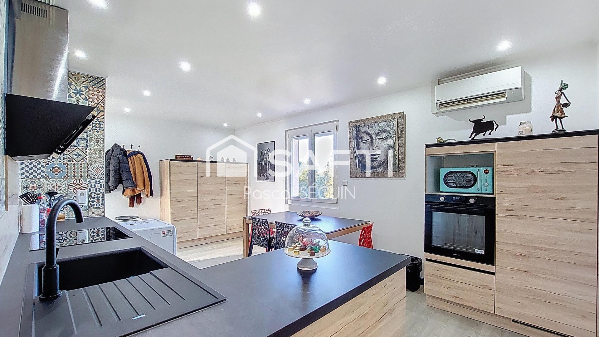 Situé à Argelès-sur-Mer (66700), au cœur du village, dans une petite copropriété avec syndic bénévole, sans charges , cet appartement de 2/3 pièces de 47 m², situé au 1er et dernier étage présente un agencement fonctionnel avec une entrée, une salle de séjour aménagée avec sa cuisine ouverte et équipée neuve, un salon , une chambre, ainsi qu'une salle d'eau et toilette séparé . ce bien entièrement rénové avec goût offre un espace de vie confortable et lumineux : double vitrage pvc, climatisation réversible, plomberie et électricité refaite ... Stationnement aisé en proximité de la résidence, idéal pour une résidence principale ou un investissement locatif dans cette belle région que sont les Pyrénées Orientales avec ses plages et ses montagnes .