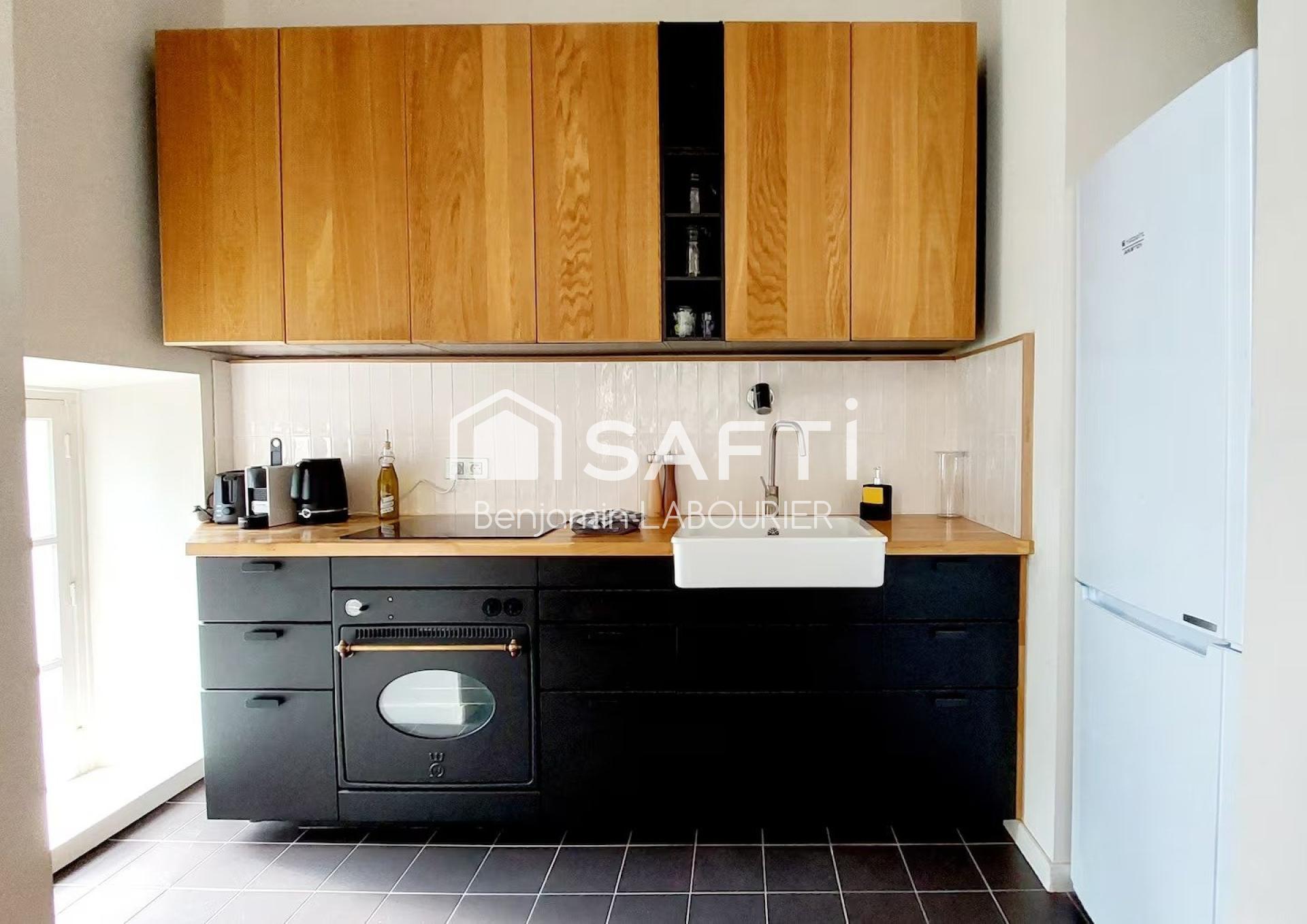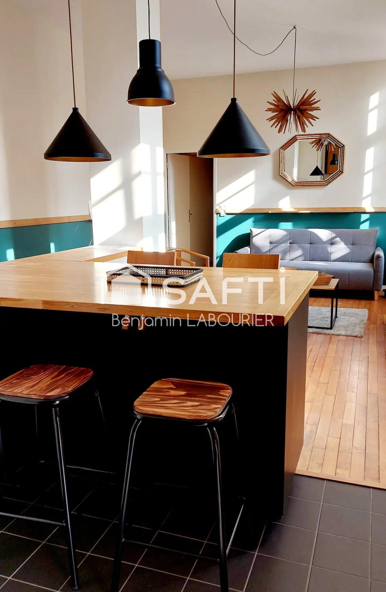 Appartement de 64 m² lumineux et rénové, classé 4.9? sur Airbnb (coup de cœur plateforme). Deux chambres (dont une avec rangement en mezzanine), cuisine équipée ouverte sur séjour, salle de bain moderne.