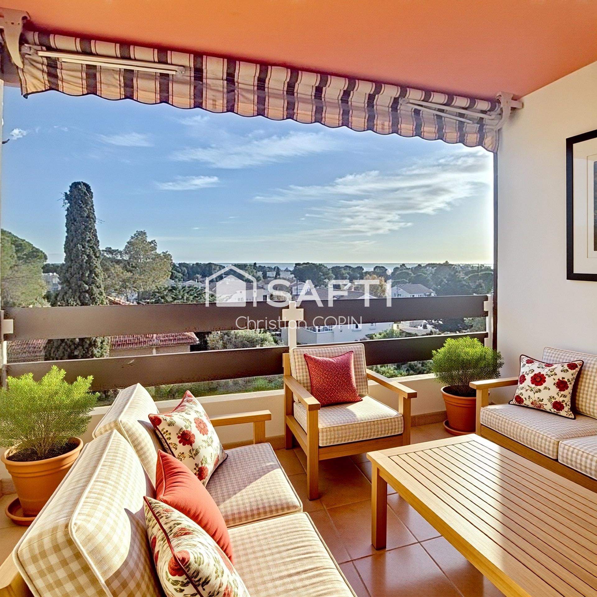 EXCEPTIONNEL DANS UN QUARTIER CALME VERDOYANT BEAU 2PIECES AVEC TERRASSE VUE MER EXPOSITION SUD +PLACE PARKING PRIVATIVE+CAVE