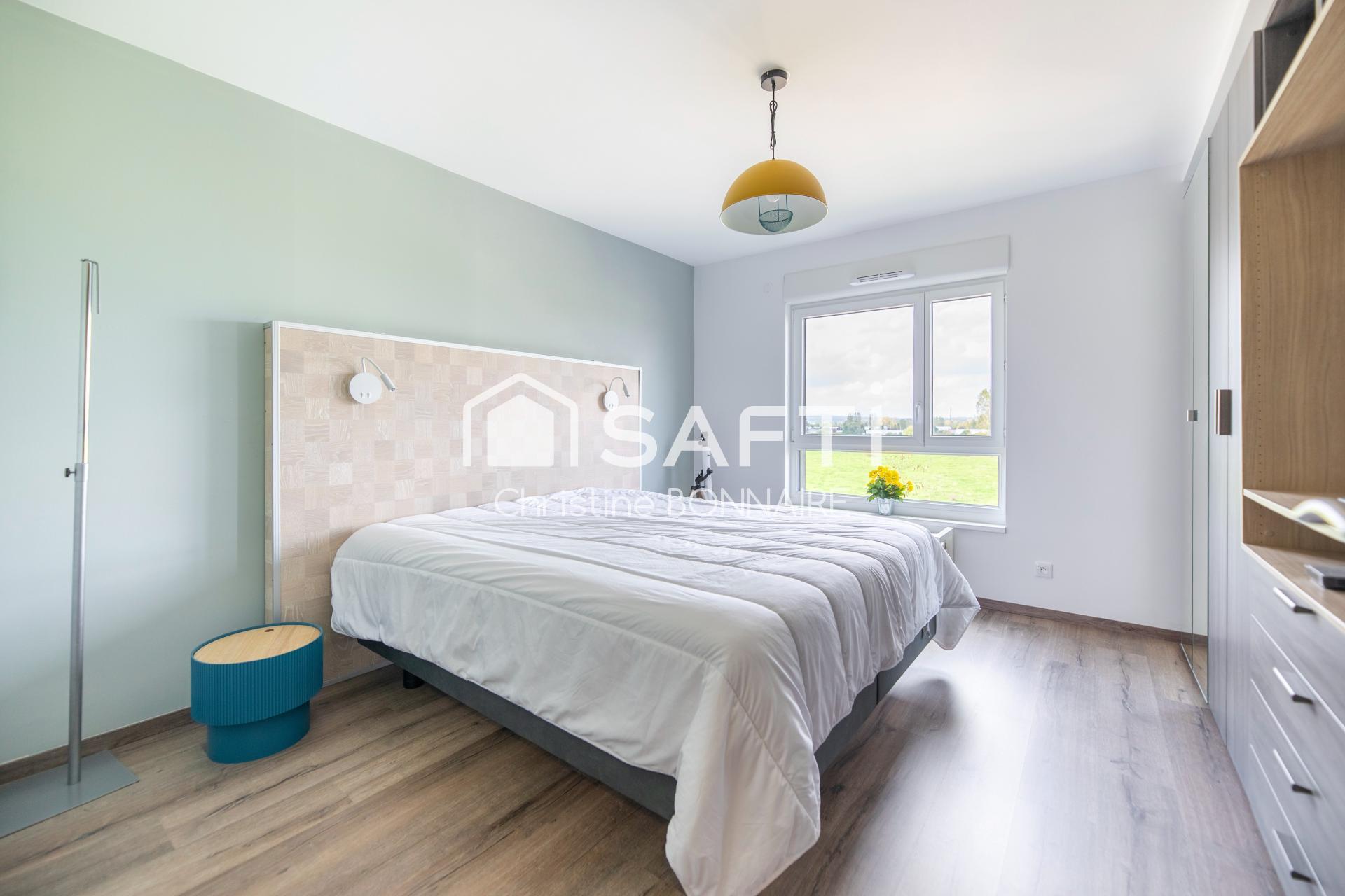 Vous bénéficierez d'un grand garage couvert avec porte motorisée, d'une place de parking extérieure, d'une terrasse sans vis-à-vis, et d'une domotique sur l'ensemble des ouvrants. Le chauffage au sol dernière génération et le double vitrage avec volets roulants électriques ajoutent un confort moderne et économe en énergie.