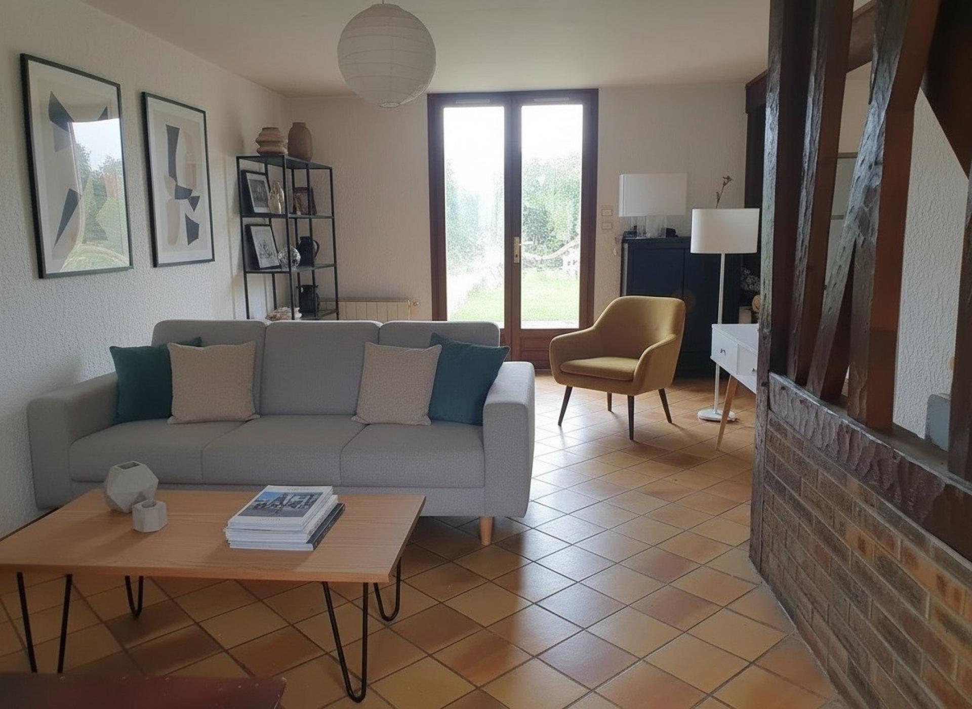 Une pièce de vie accueillante donnant sur un petit Jardin,