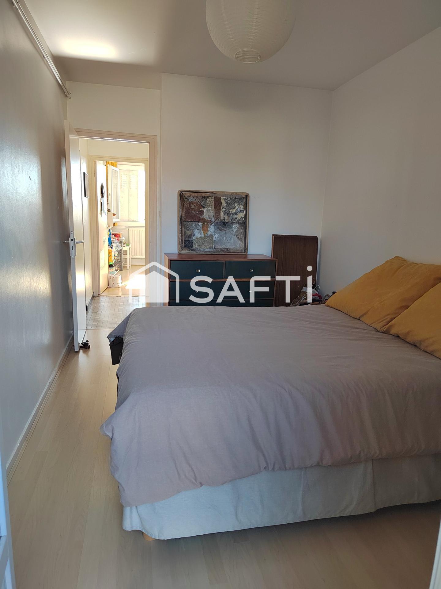 Dans résidence des années 60, au 2ème étage sur 7 avec ascenseur, appartement traversant de 70m² comprenant : entrée, cuisine séparée donnant sur loggia, séjour double, dégagements avec placards, wc séparés, salle de bain et deux chambres dont une donnant sur un balcon.