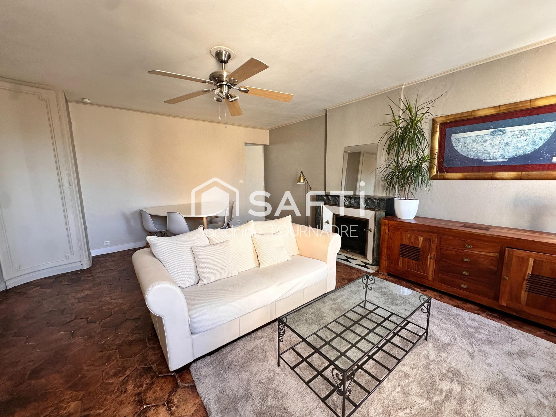 L’appartement est baigné de lumière et ses prestations anciennes se développement sur deux chambres, un beau séjour, une cuisine bien équipée, une grande salle de bain et un wc indépendant.