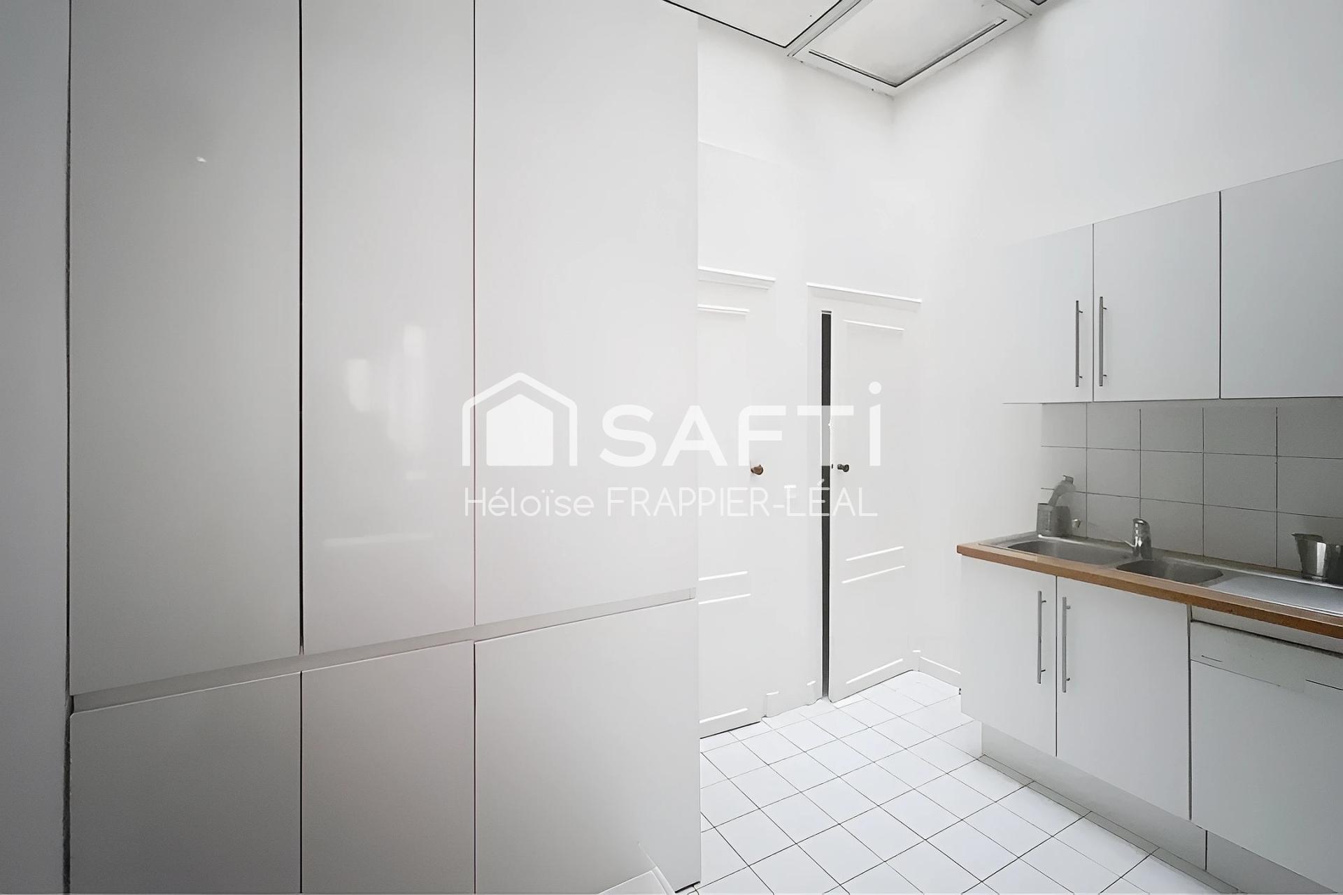 Immeuble en pierre, 1er étage. Parquet ancien rénové, belle hauteur sous plafond, volumes distincts. Rue calme, adresse centrale.
