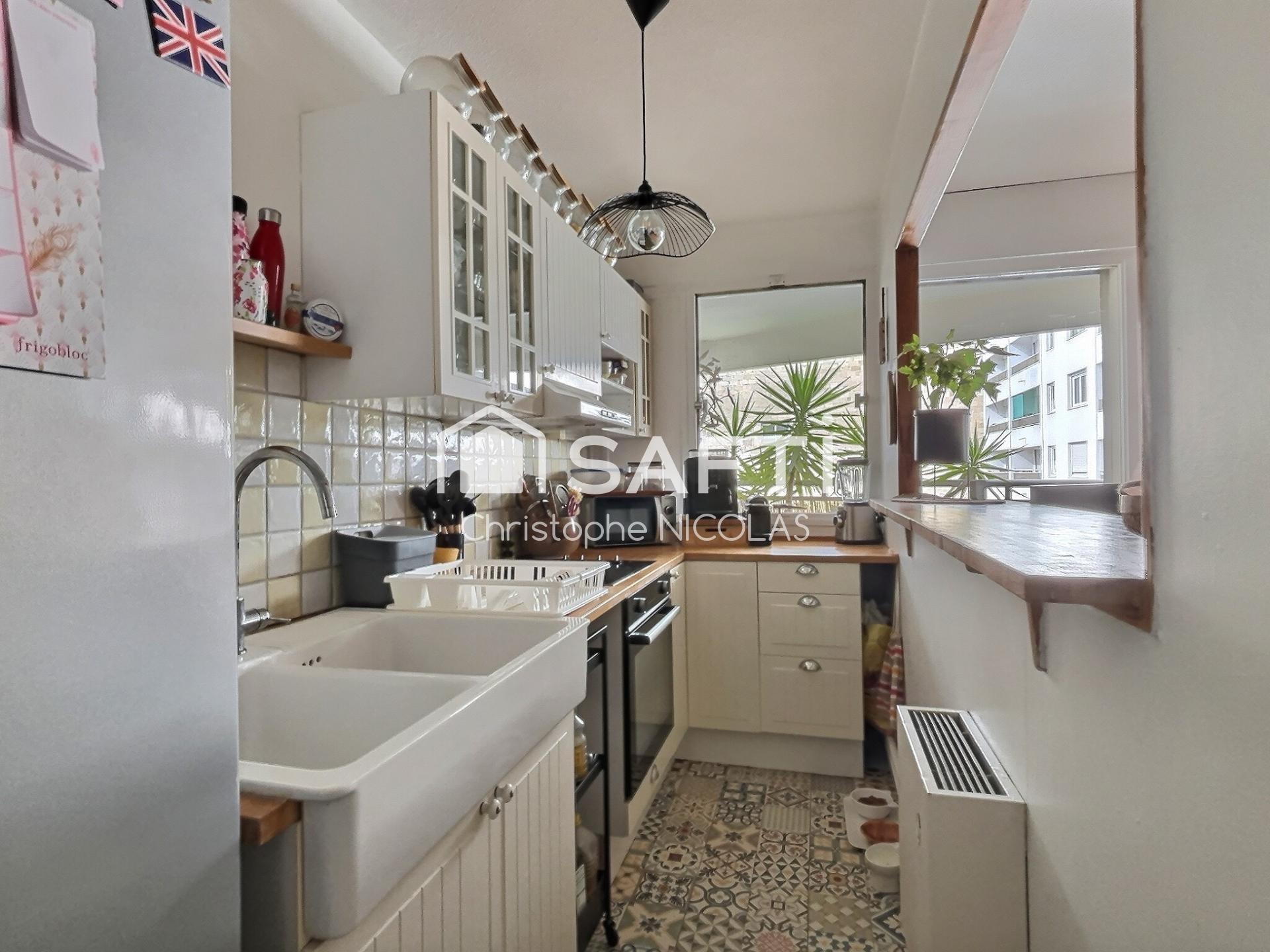 Le séjour de 21 m² s’ouvre sur une cuisine équipée semi-ouverte qui a également une vue sur le balcon. Deux chambres avec des rangements pratiques, une salle d’eau fonctionnelle et surtout deux spacieux balcons de 8,5 m² chacun viennent compléter l’ensemble.