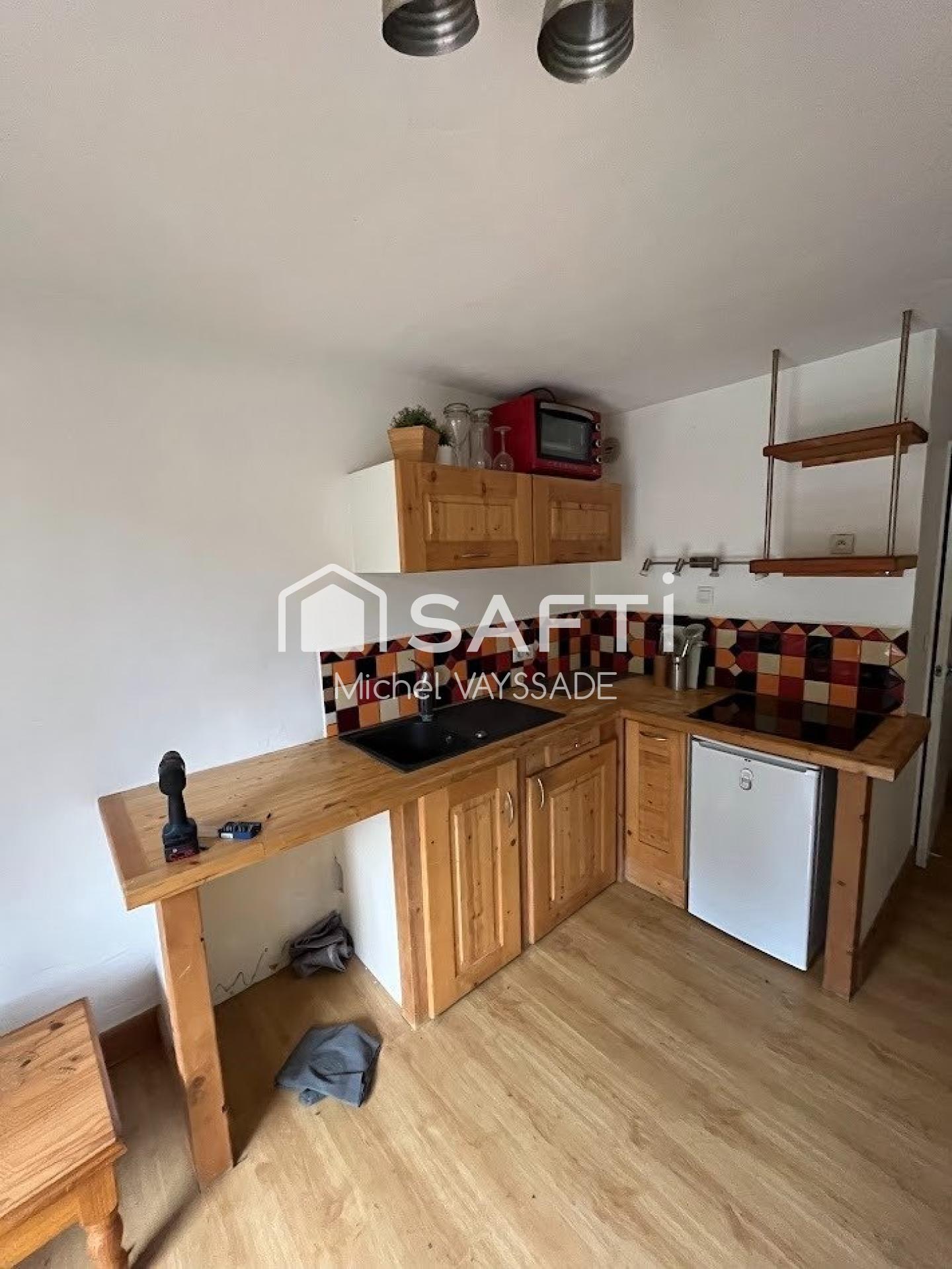 Cet appartement de 25,29 m², construit en 1984, comprend une pièce principale multifonctionnelle comprenant un espace couchage, une cuisine équipée, ainsi qu'une salle d'eau avec toilettes. À cela s'ajoute un espace extérieur de 10 m², offrant un cadre agréable pour profiter des montagnes environnantes. Suite à un incendie partiel de la copropriété, des travaux de reconstruction sont en cours et le studio devrait être disponible dans les 24 mois environ.