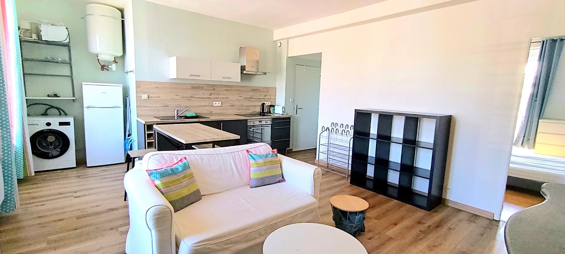 Cet appartement traversant de 41 m², classé en classe énergétique D, propose un espace de vie confortable et fonctionnel. Entièrement meublé, il se compose d'une pièce de vie lumineuse accueillant un salon-séjour, d'une cuisine équipée et aménagée offrant tout le nécessaire pour les repas du quotidien, d'une chambre agréable, et d'une salle de bain incluant des toilettes. Idéal pour un premier achat ou un investissement locatif, ce bien saura vous séduire par sa configuration et sa situation géographique.