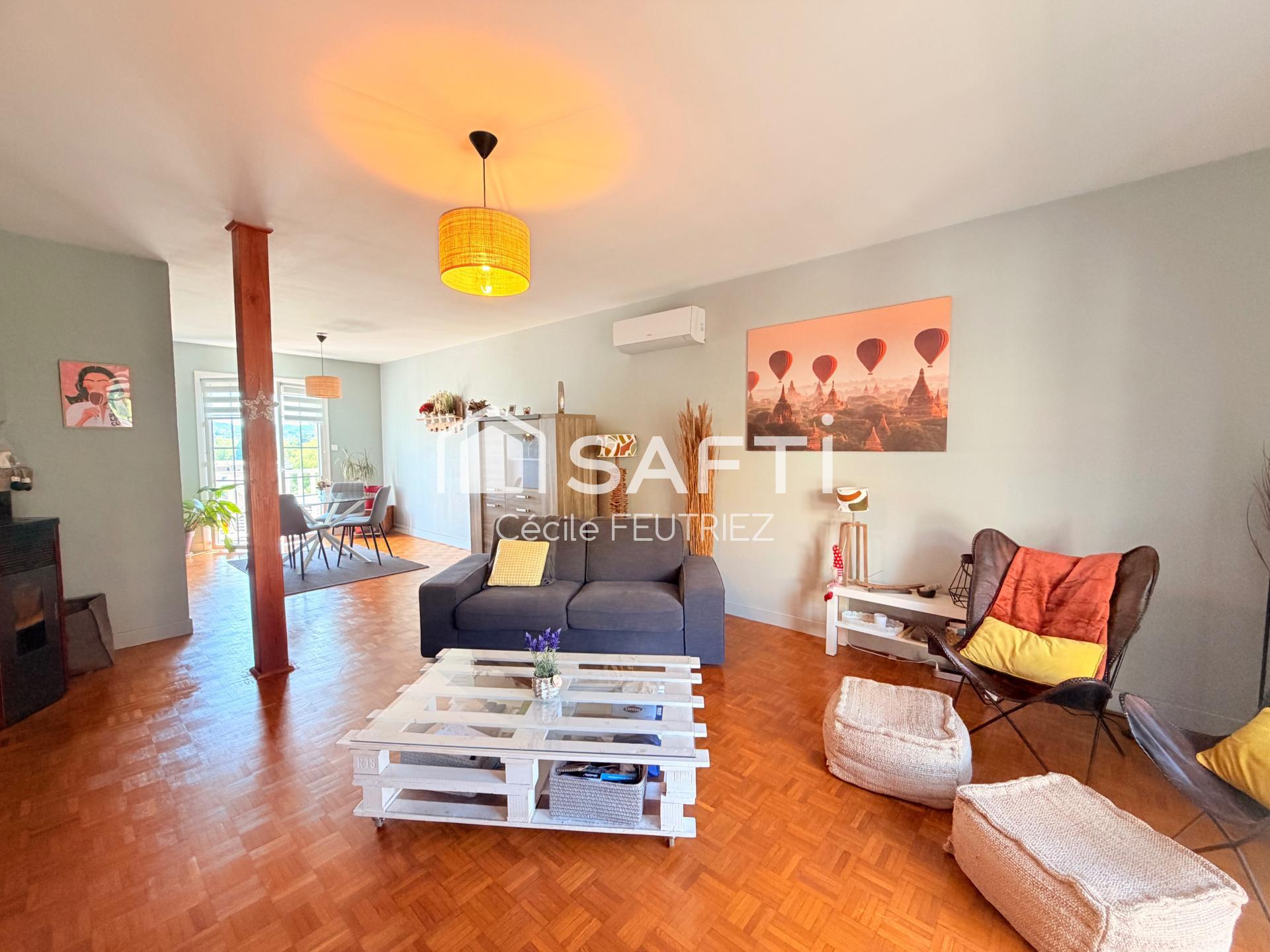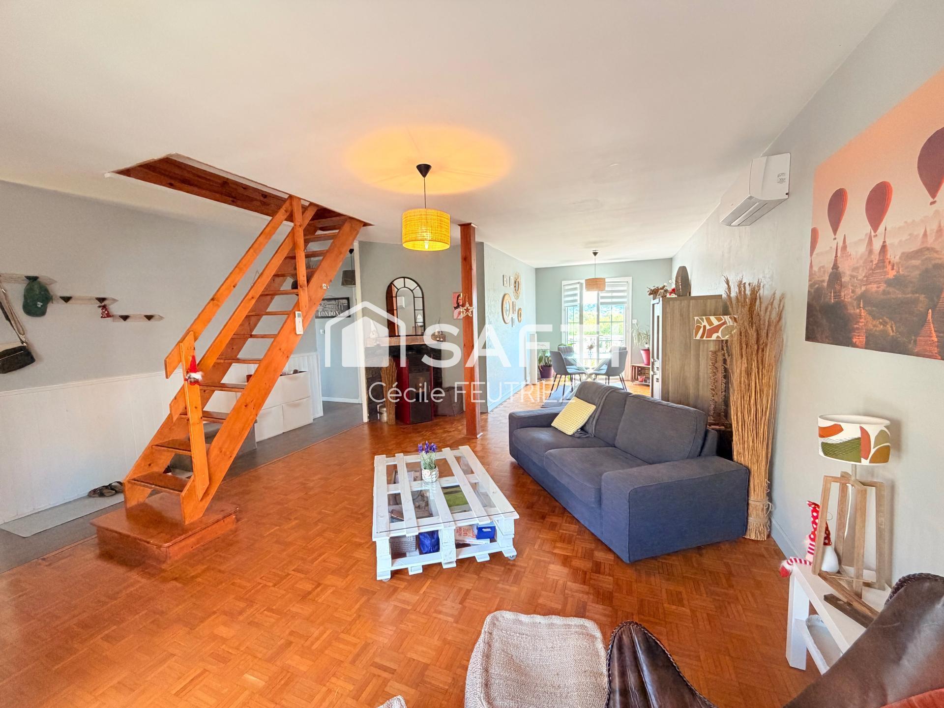 Dès l’entrée en rez-de-chaussée, vous serez séduit par un vaste séjour lumineux avec espace salle à manger, agrémenté d’une climatisation réversible et d’un poêle à granulés pour un confort optimal toute l’année .