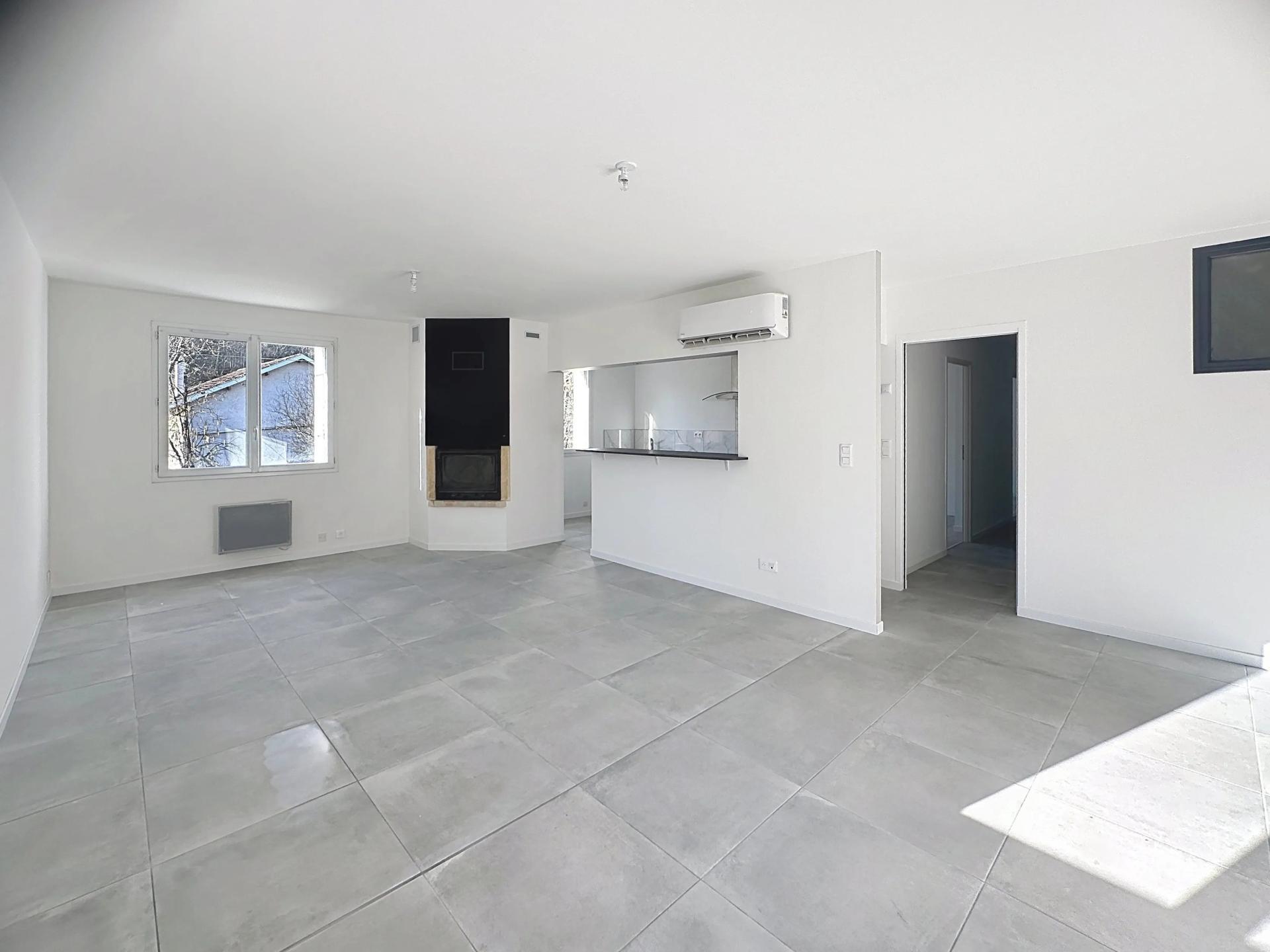 Situé secteur terre-rouge ( le payrat) proche de toutes commodités ( école, bus , commerces , complexe sportif ) dans une petite copropriété au calme avec 3 logements . Au rez- de -jardin un grand garage porte motorisé et porte de service , deux places de parking , un jardin de 140 m2 avec le droit de jouissance . Au premier et seul étage l’appartement de 98 m2 habitables entièrement refait à neuf avec son escalier privatif . A l’entrée la pièce de vie , salon/séjour ( clim ) une cuisine ouverte ( plaque induction , hôte , lave vaisselle .Dans le coin nuit 3 chambres ( 12,04 , 13,97 et 12,35 m2 ) , une salle de bain ( baignoire et douche italienne ) wc indépendant . Menuiseries double vitrage , aucun travaux à prévoir .