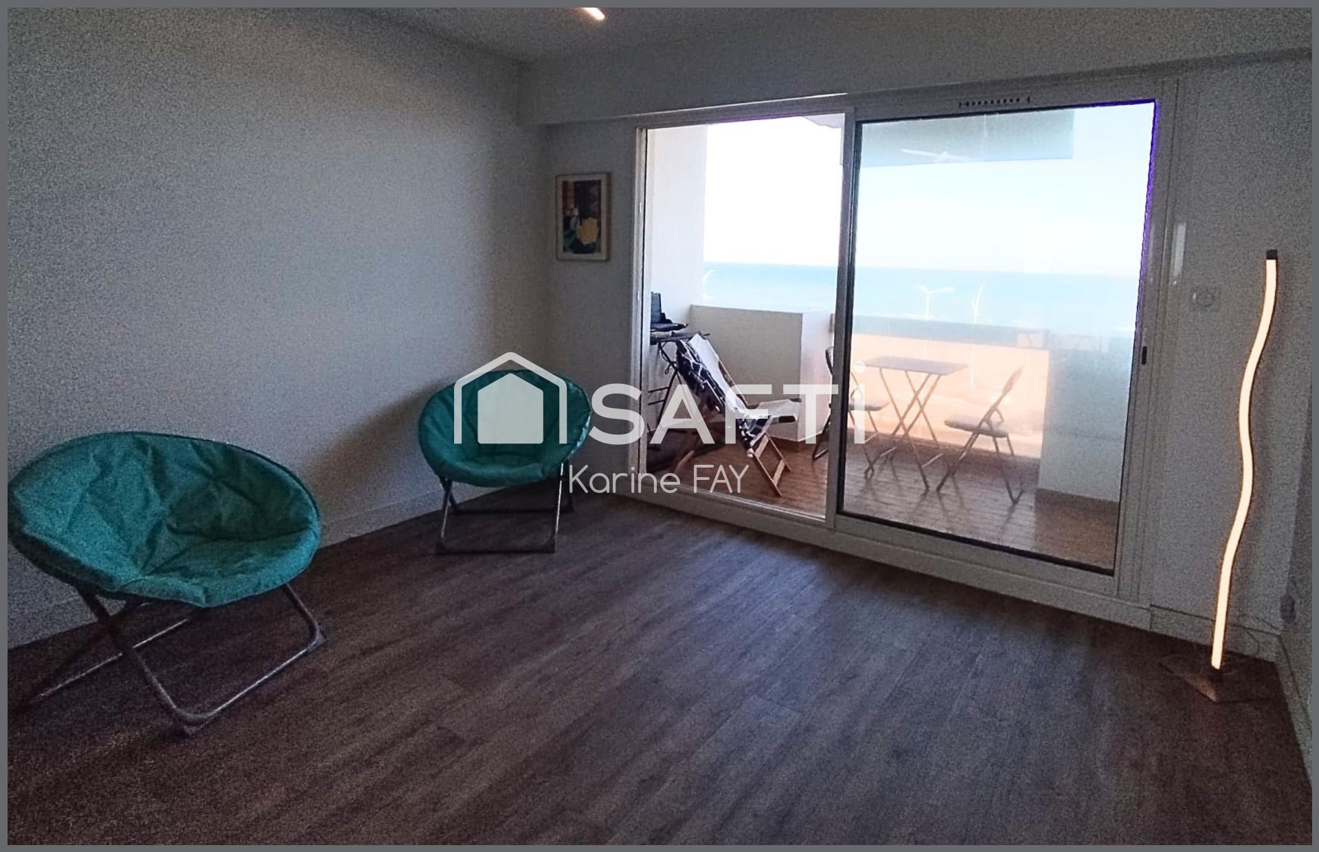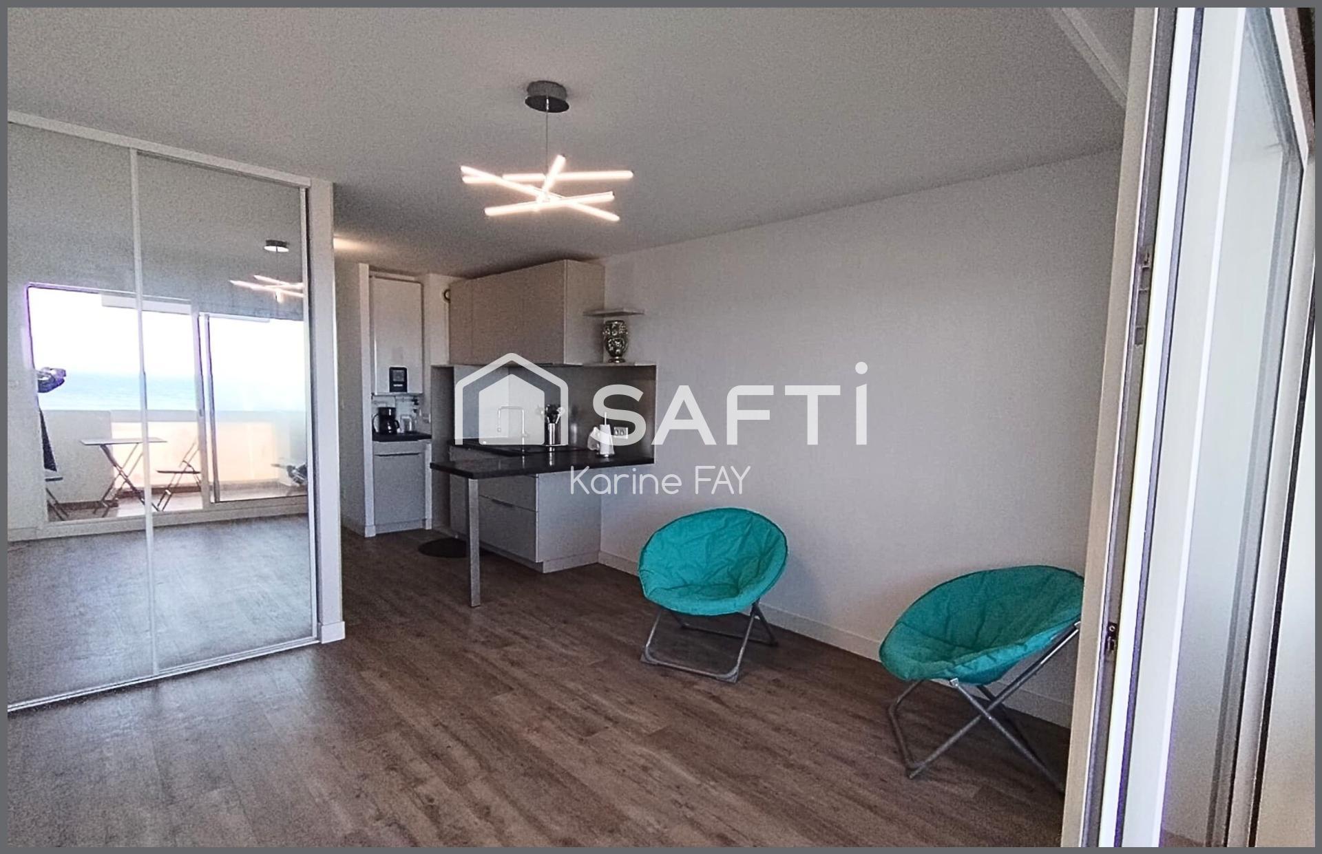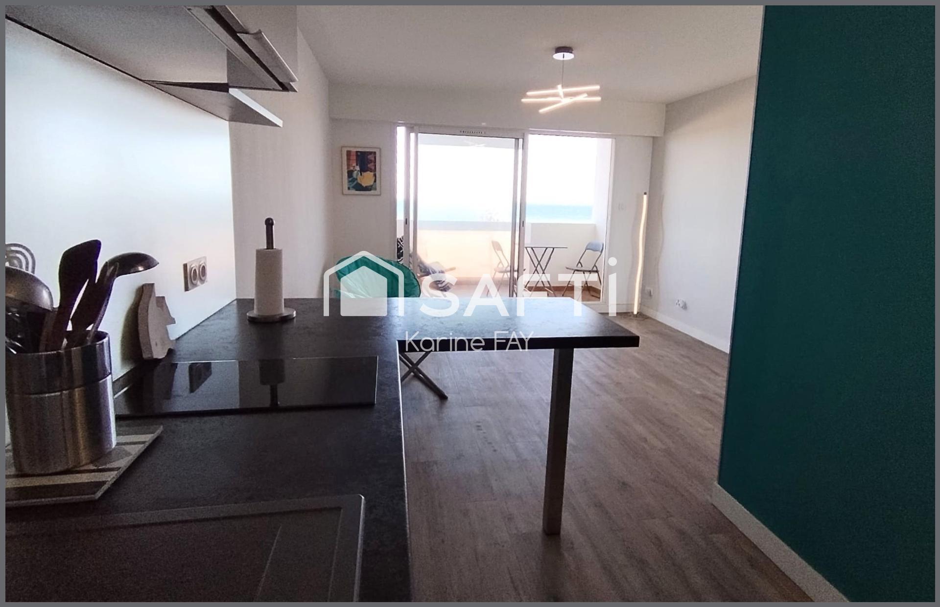 CANET PLAGE - En Front de mer - Karine Fay vous présente en exclusivité ce superbe studio lumineux entièrement rénové de 22m², prolongé par une terrasse de 7m² offrant une vue panoramique à 180° sur la mer et les Albères.