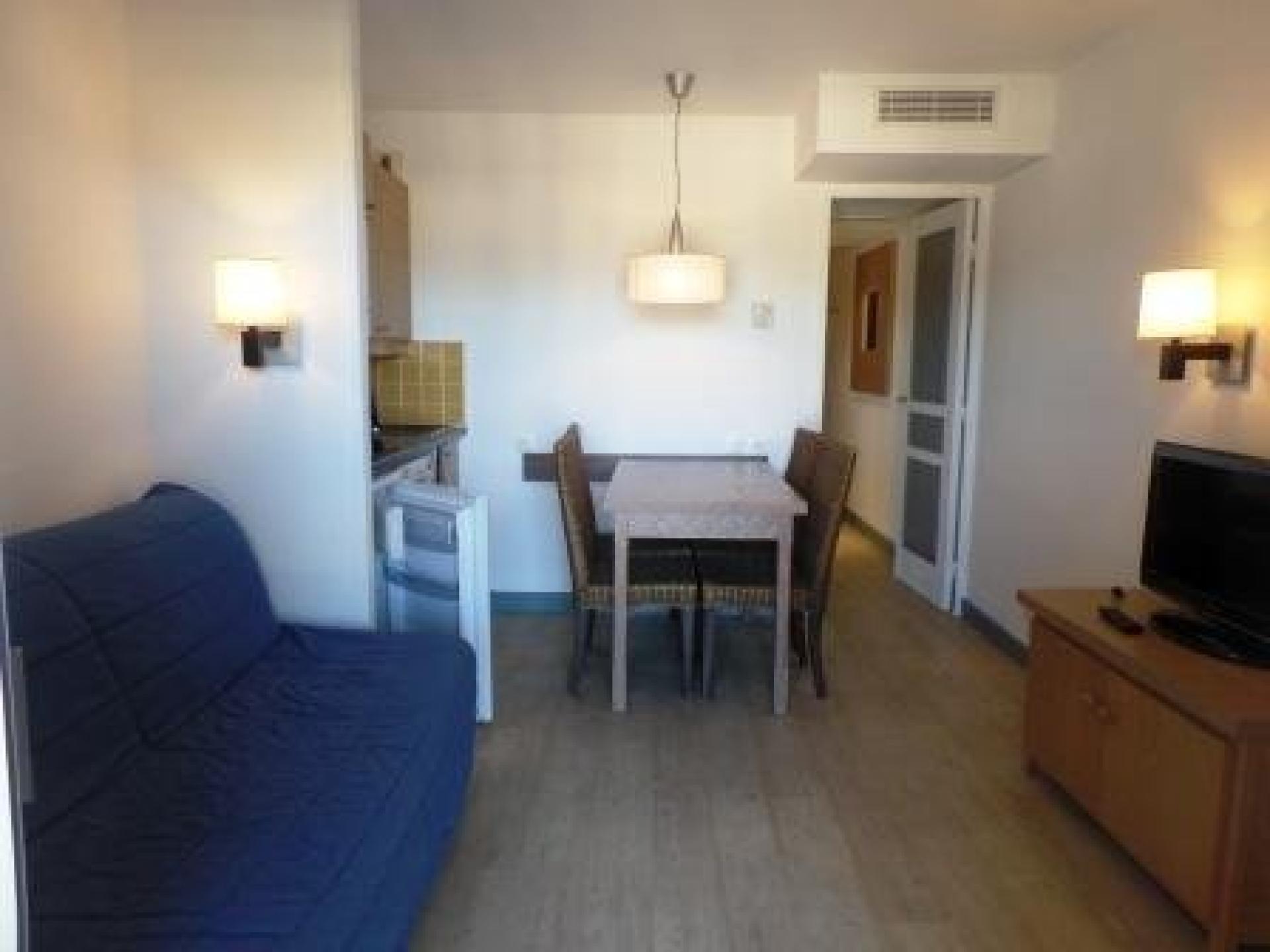Studio cabine meublé au sein d’une résidence avec piscine se situe à 5 minutes à pieds des plages et à 500 mètres du centre de Cannes la Bocca.