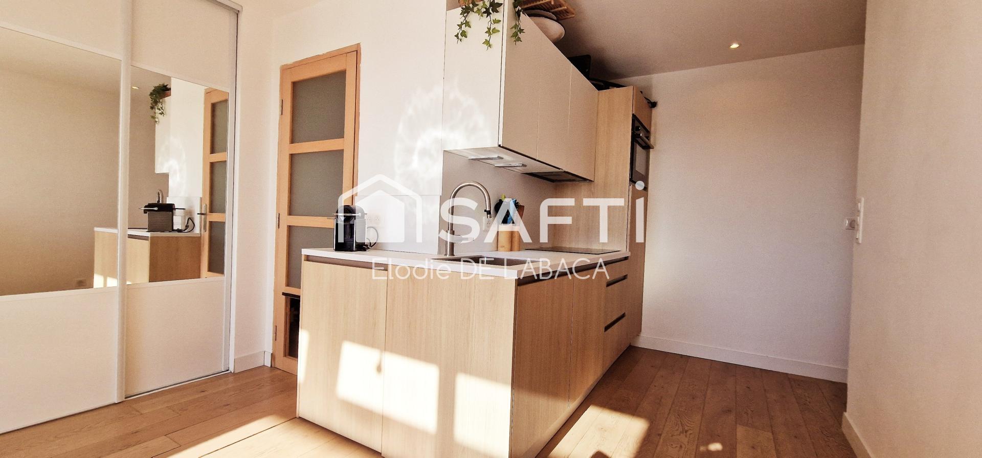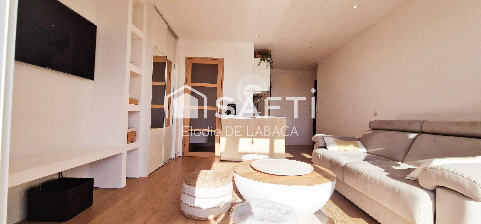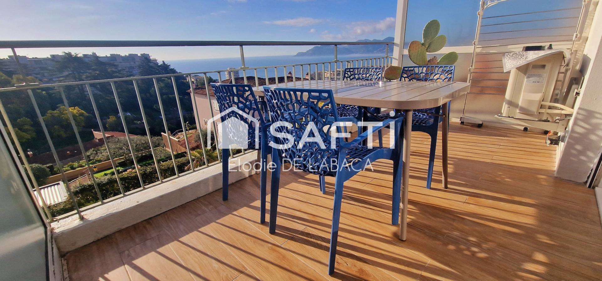 Entièrement refait à neuf, vous serez séduit par les 24 m2 de cet appartement climatisé exposé sud, composé d'une entrée, d'une magnifique cuisine entièrement équipée ouverte sur la pièce de vie baignée de lumière et ouvrant sur une terrasse avec vue mer et collines de l'Estérel, d'une jolie salle de bain avec wc.