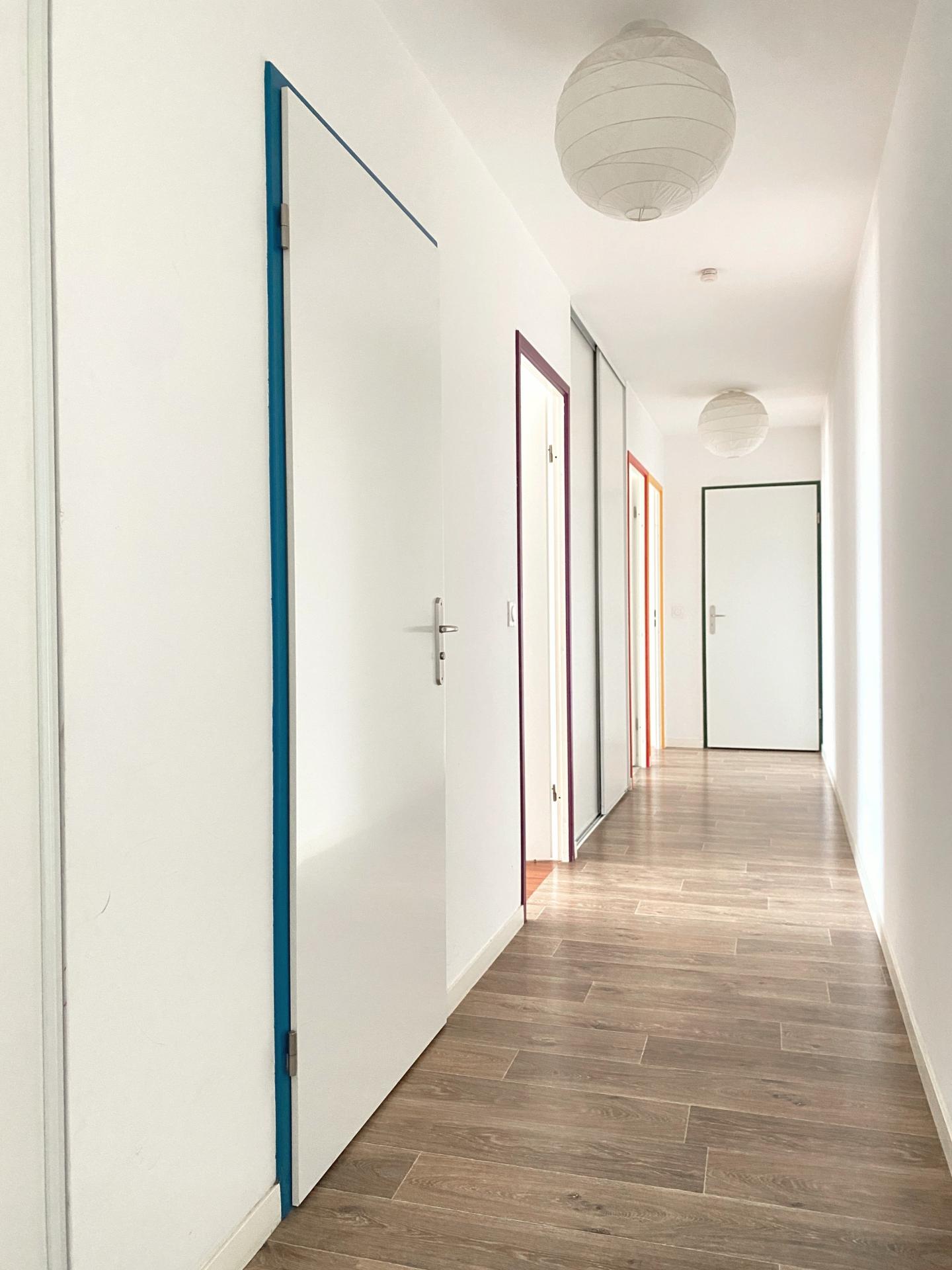 Un large couloir dessert la partie nuit, composée de trois chambres, d’un espace buanderie avec WC et d’une salle de bain fonctionnelle et élégante.