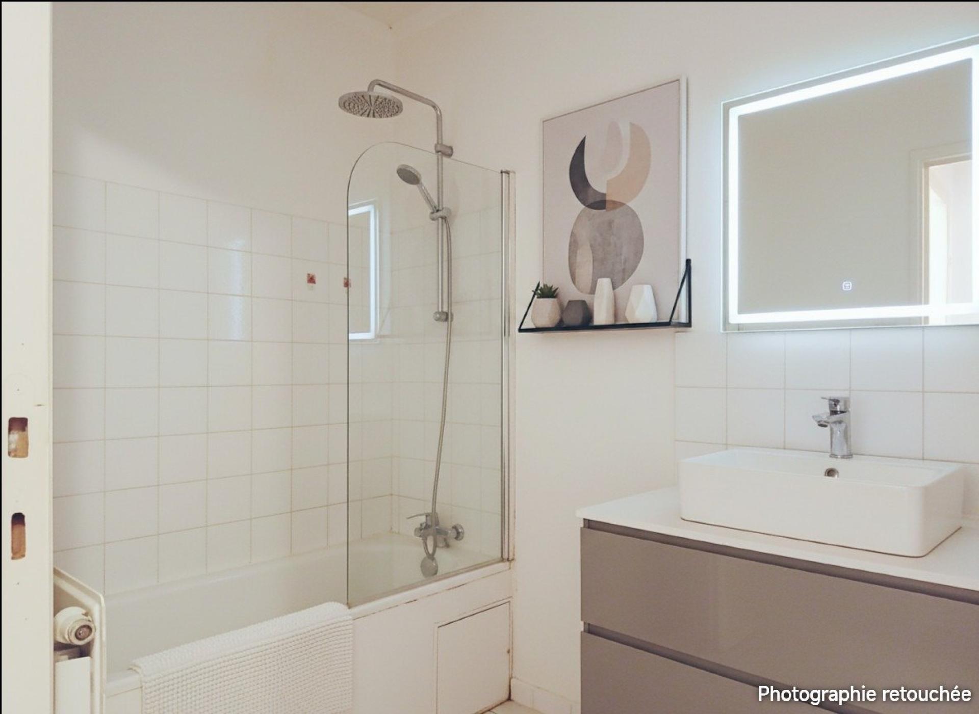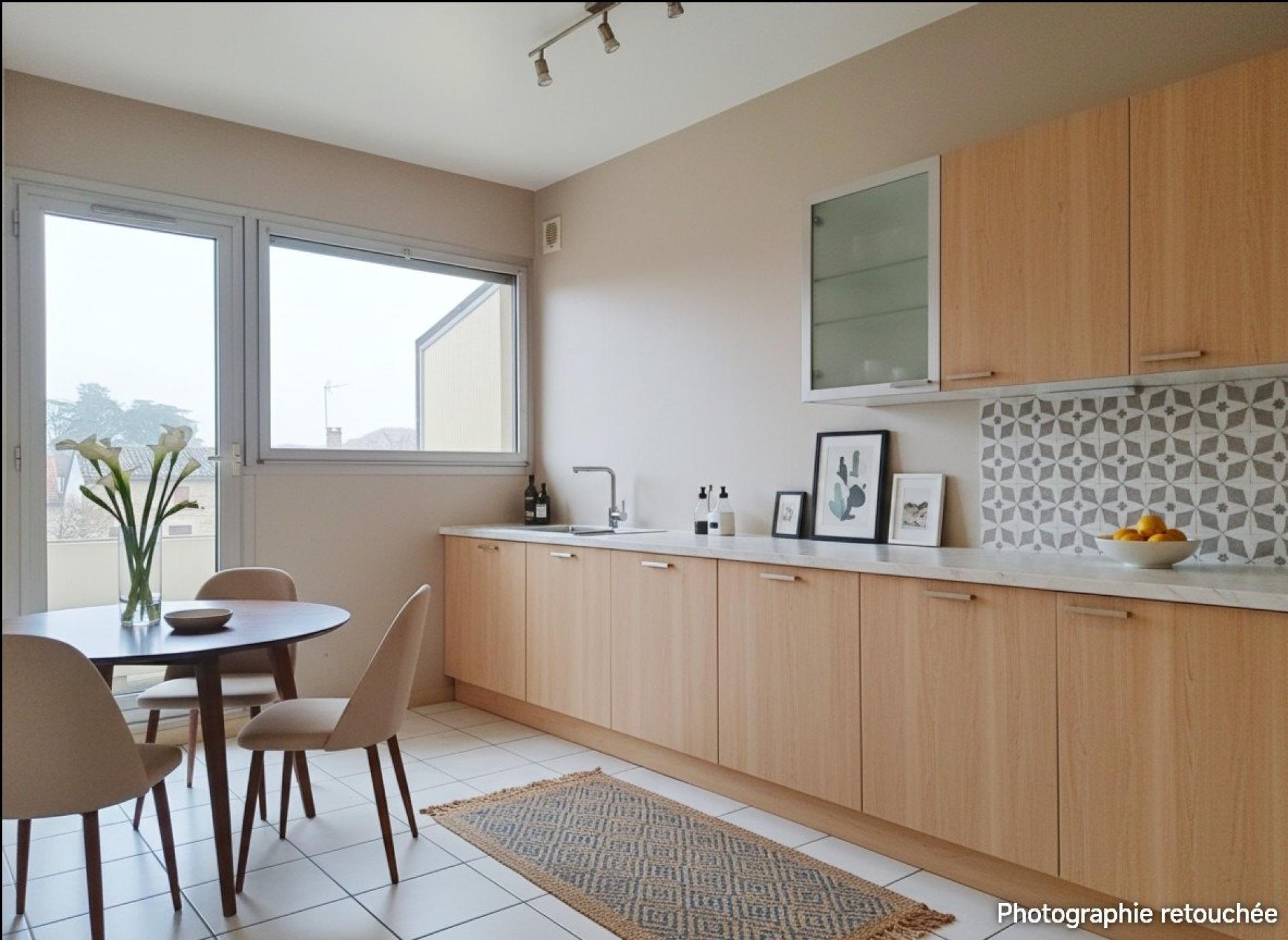 Des travaux de rafraichissement sont nécessaires, une projection par IA est visible dans les photos.