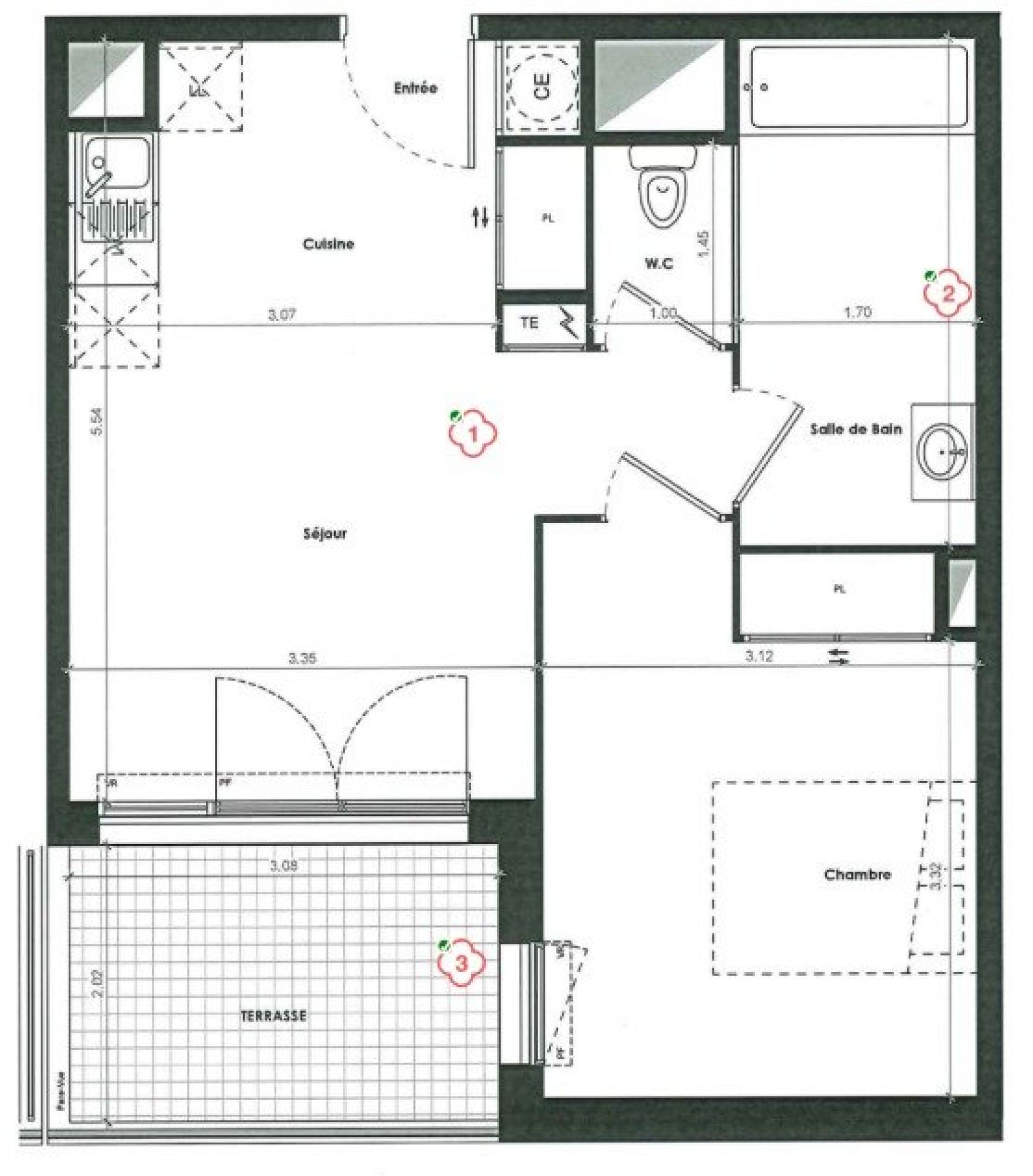Aperçu de cet appartement à vendre de 2 pièces et 41 m²