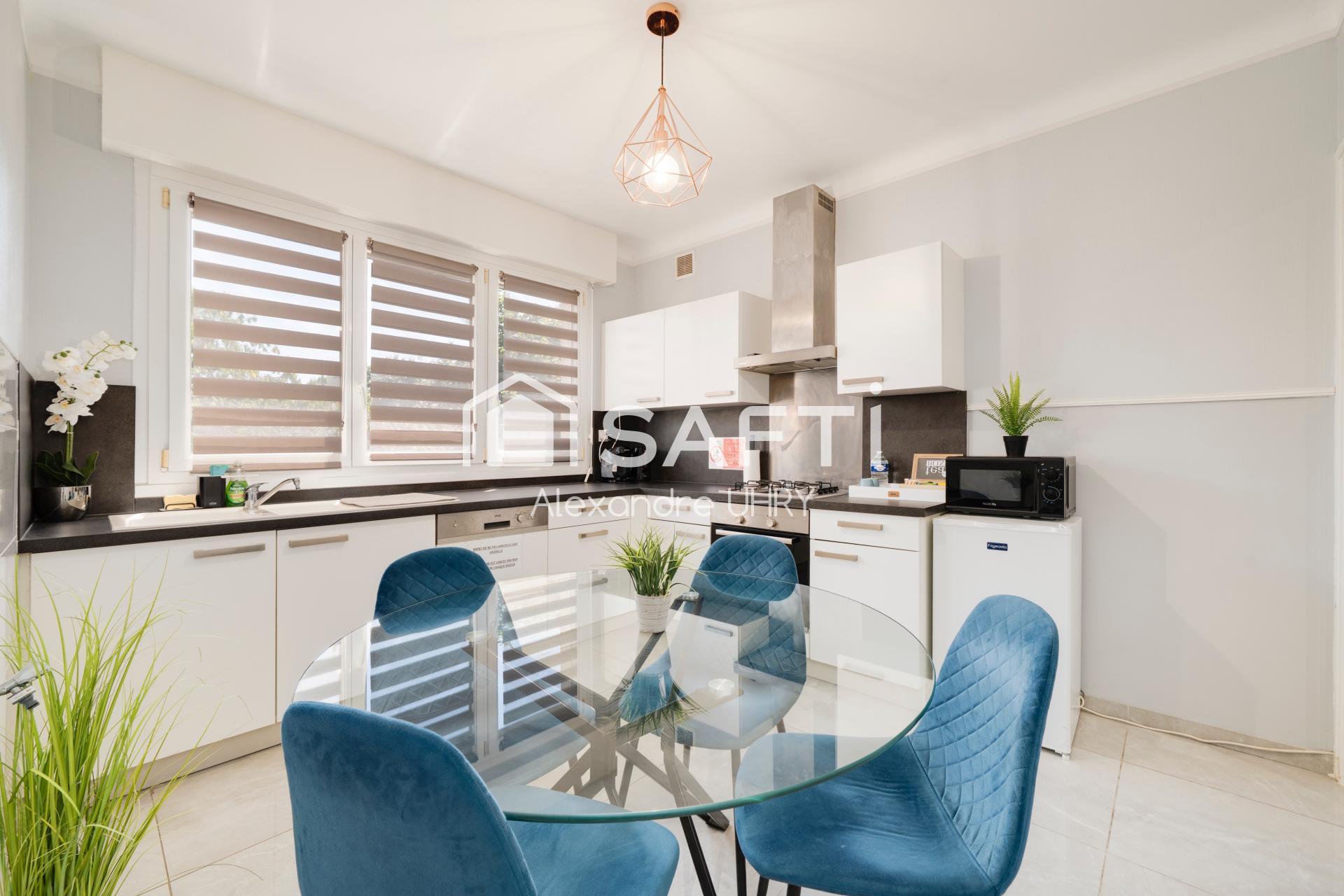 À l'intérieur, vous découvrirez un appartement de 80 m² comprenant un salon-séjour spacieux, une cuisine équipée fonctionnelle, 2 chambres confortables, une salle d’eau, des toilettes séparées. En plus, un espace totalement indépendant de 40m² avec cuisine, salon-séjour, wc et salle d'eau. Avec ses 120 m2, cet appartement offre un espace de vie généreux et fonctionnel, idéal pour une famille à la recherche de confort et de commodités.