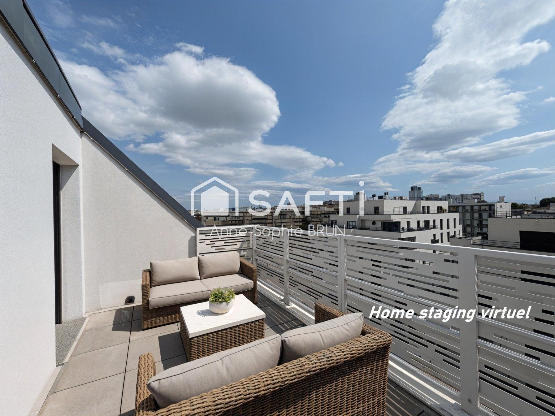 4 pièces 81m², 7ème et dernier étage avec ascenseur, traversant, lumineux, vue dégagée, 2 terrasses exposées sud/sud-est et nord/nord-ouest,