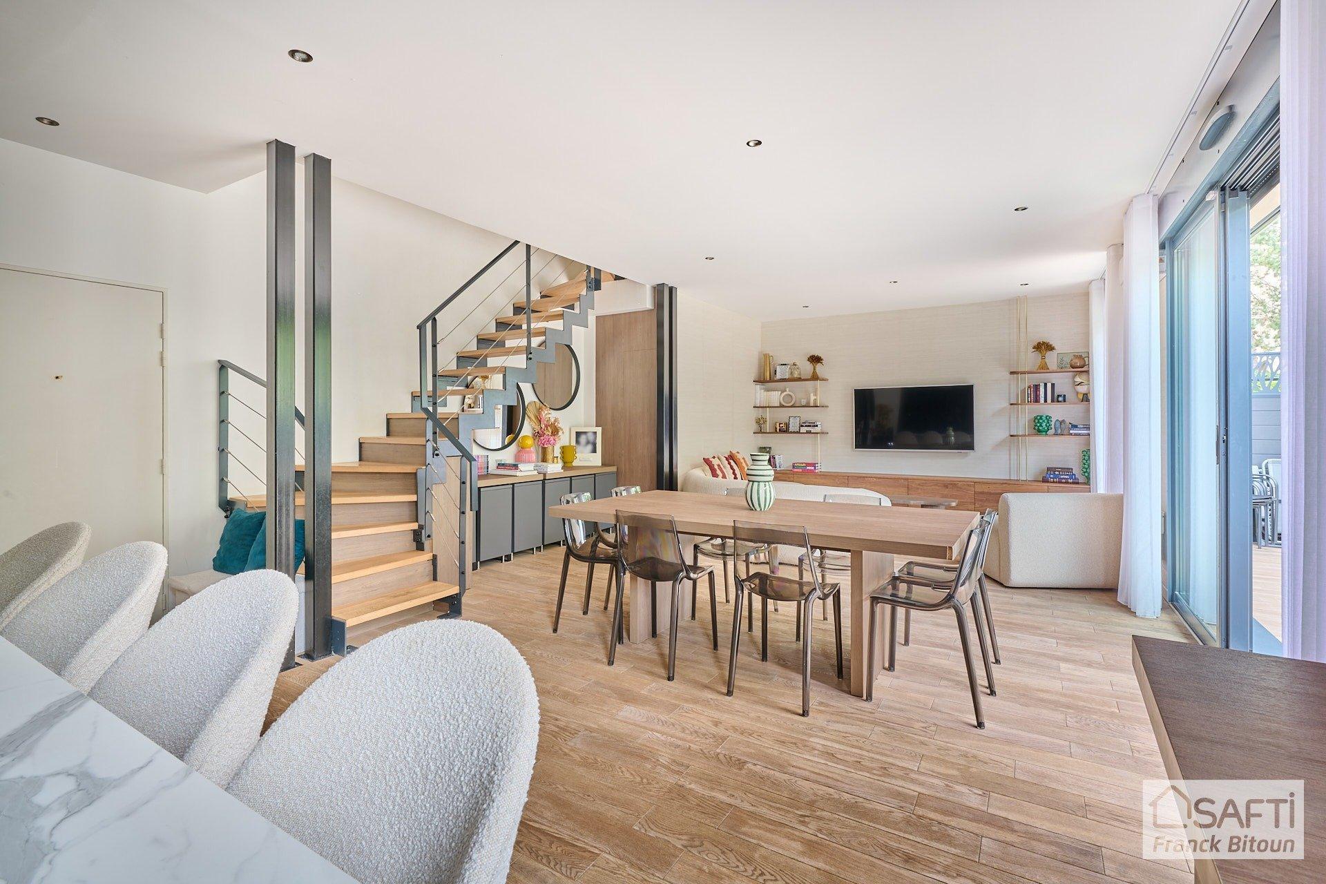 Au cœur du quartier prisé de BÉCON-LES-BRUYÈRES, entre le Parc et la Gare de Bécon (ligne L et future ligne 15 du Grand Paris), au rez-de-jardin d’un petit immeuble de très bon standing entièrement rénové en 2021, magnifique DUPLEX de 6 pièces, 144.3 m² Carrez, en PARFAIT ÉTAT.