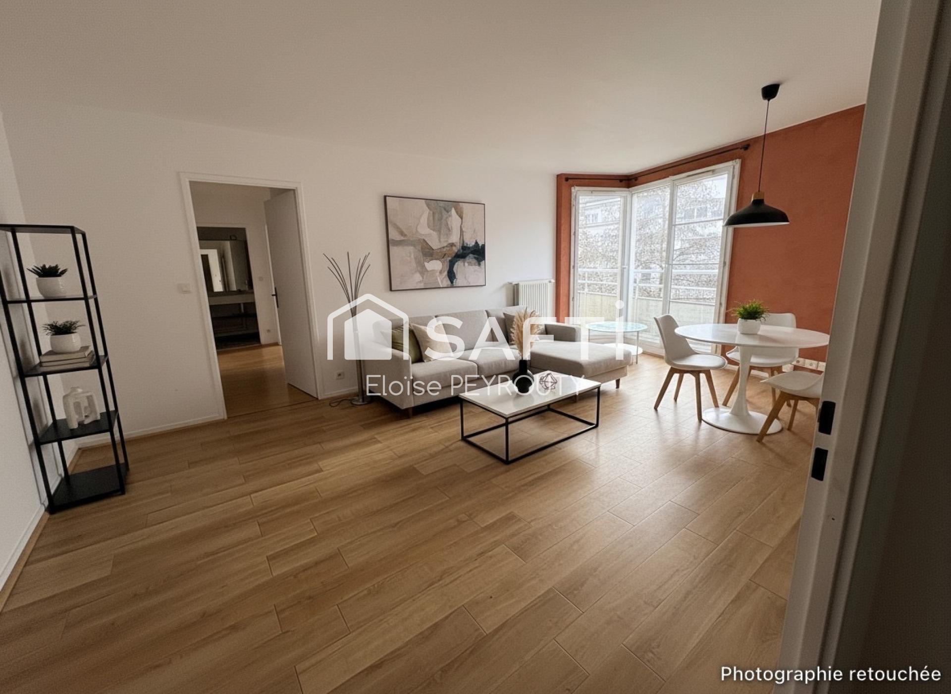 Cet appartement de 56 m², situé au 3e étage, dispose d'un balcon offrant une vue dégagée. De plus, il bénéficie d'une petite cave et d'une place de parking couverte, un atout non négligeable. Le double vitrage assure une isolation phonique efficace.