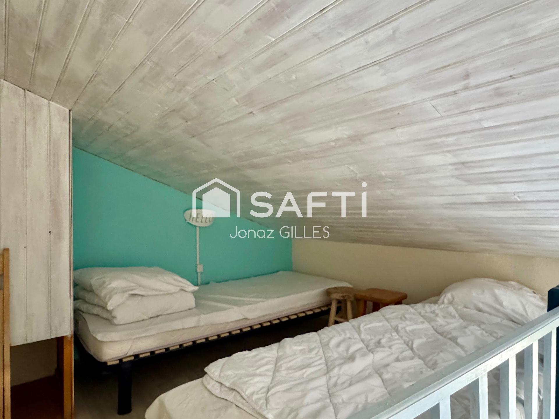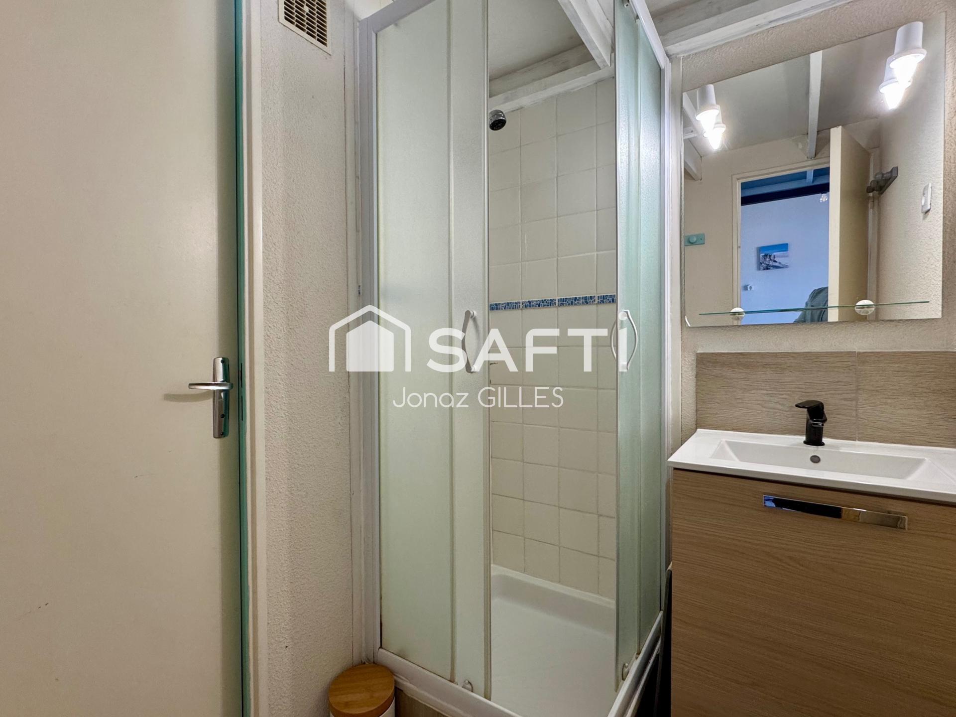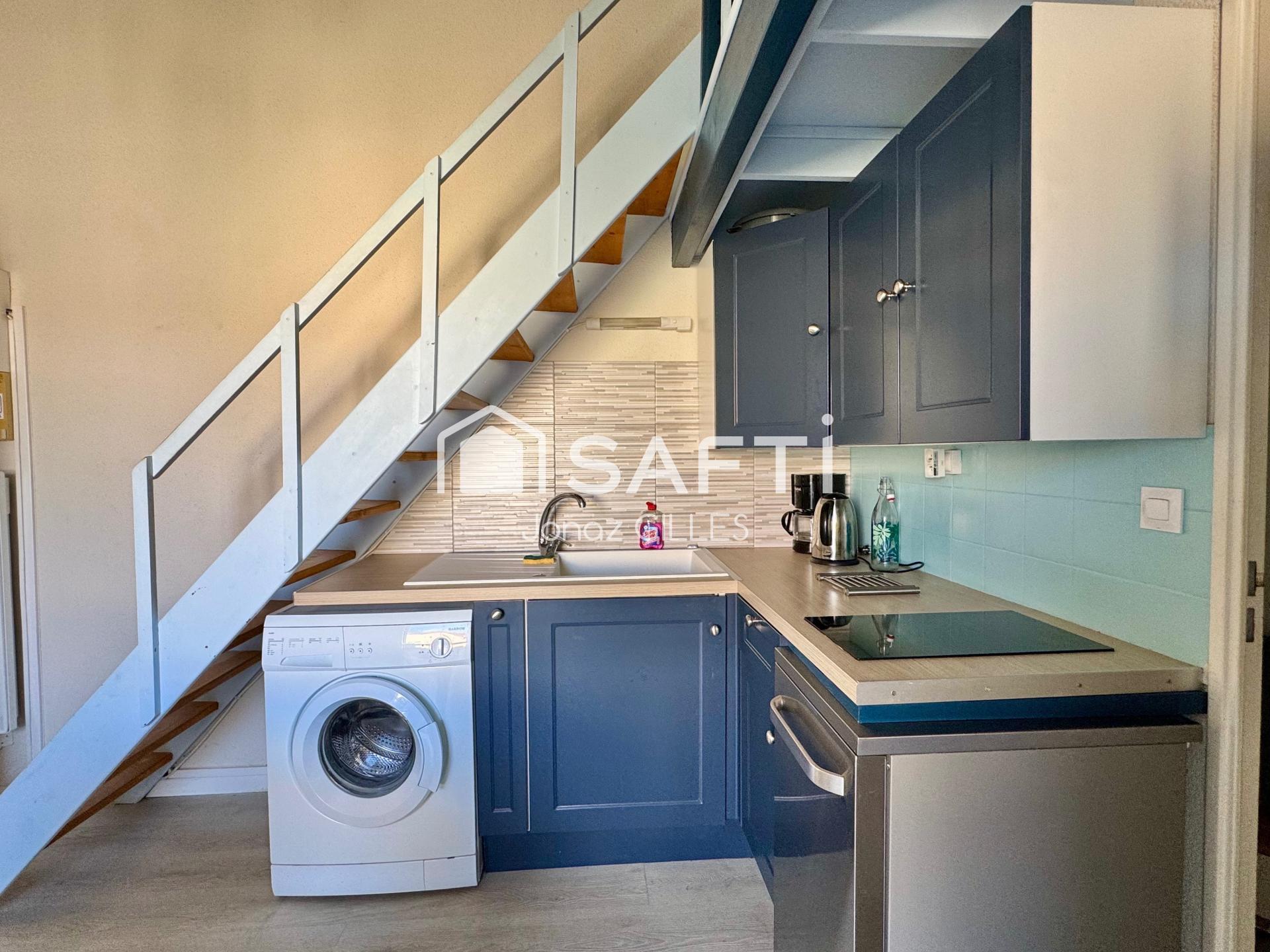 Ce bien se compose d’une pièce de vie avec coin cuisine aménagé, offrant un espace convivial et fonctionnel. Vous profiterez également d’une chambre confortable, d’une salle d’eau moderne, ainsi que d’un coin mezzanine idéal pour un couchage supplémentaire ou un espace nuit d’appoint.