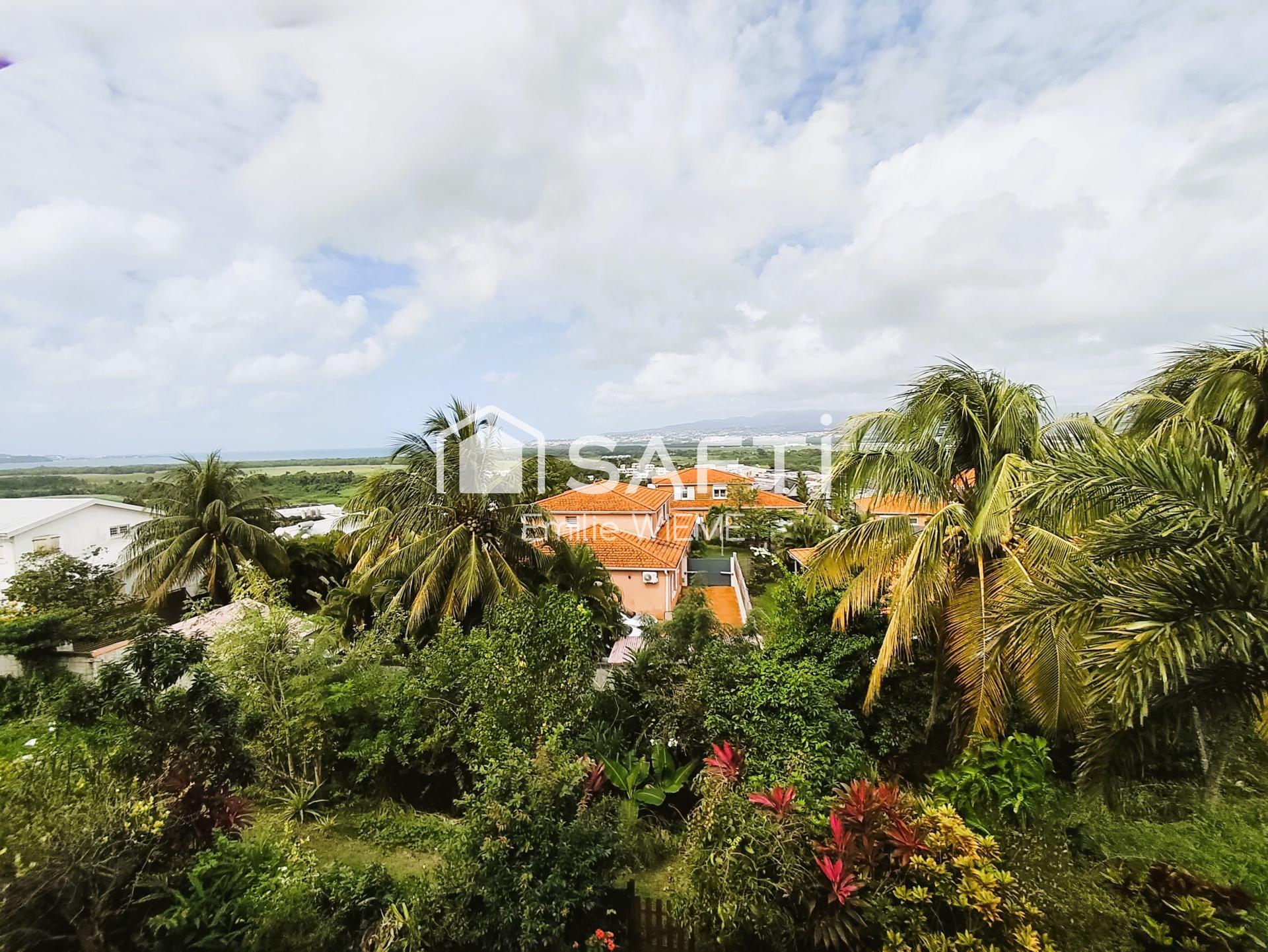 Perché au 2ème étage d'une résidence sécurisée et verdoyante du quartier Petite Cocotte à Ducos, cet appartement T4 vous offre un panorama exceptionnel sur la baie de Fort-de-France, les mangroves et les montagnes de la Martinique.