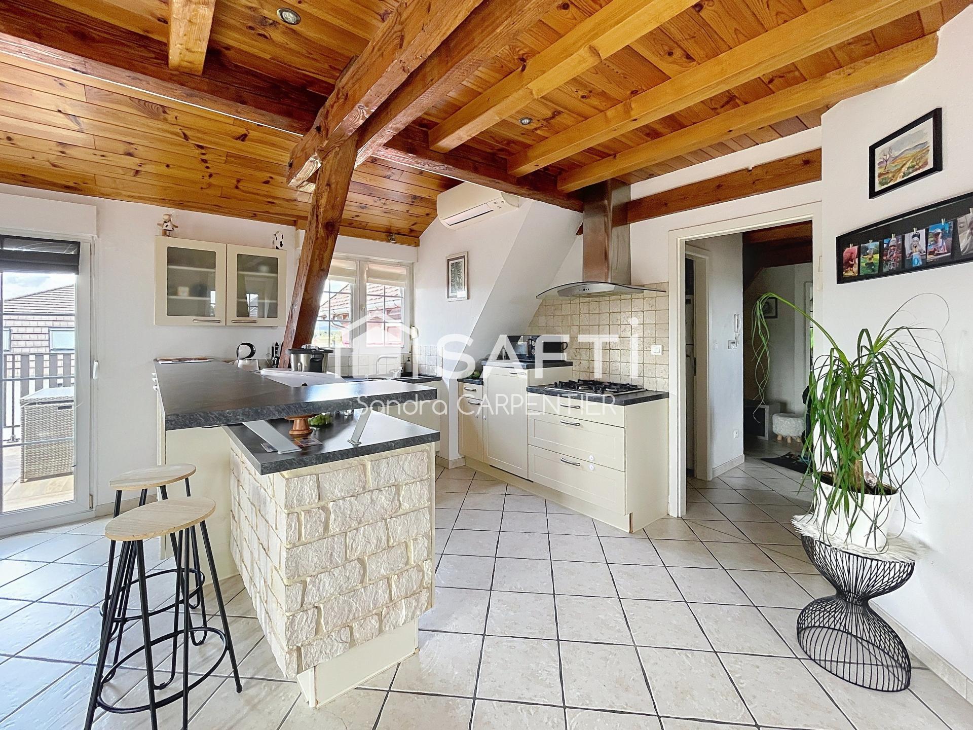 À seulement cinq minutes de Sélestat et de toutes ses commodités, découvrez ce superbe appartement de 98 m² (81 m² Carrez) situé au troisième étage d’une petite copropriété intimiste de cinq lots, parfaitement entretenue.