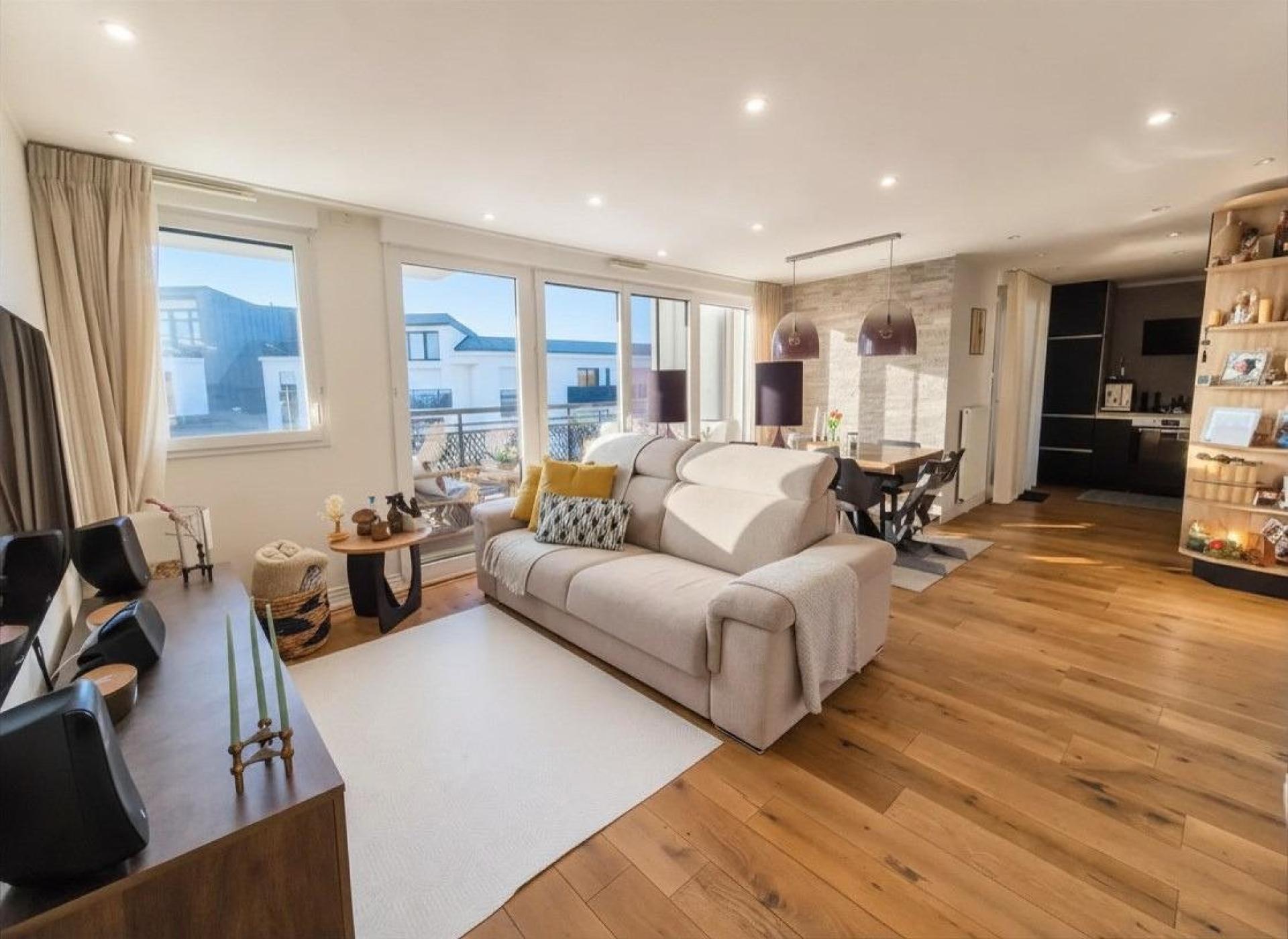 Dès l’entrée, vous ressentez cet équilibre rare : des volumes généreux, une circulation fluide et une lumière omniprésente. Le cœur de vie s’organise autour d’un séjour spacieux d’environ 35 m² avec cuisine ouverte, un véritable lieu de partage où l’on cuisine, reçoit et profite en famille. Les ouvertures sur la terrasse prolongent naturellement l’espace vers l’extérieur… comme dans une maison.