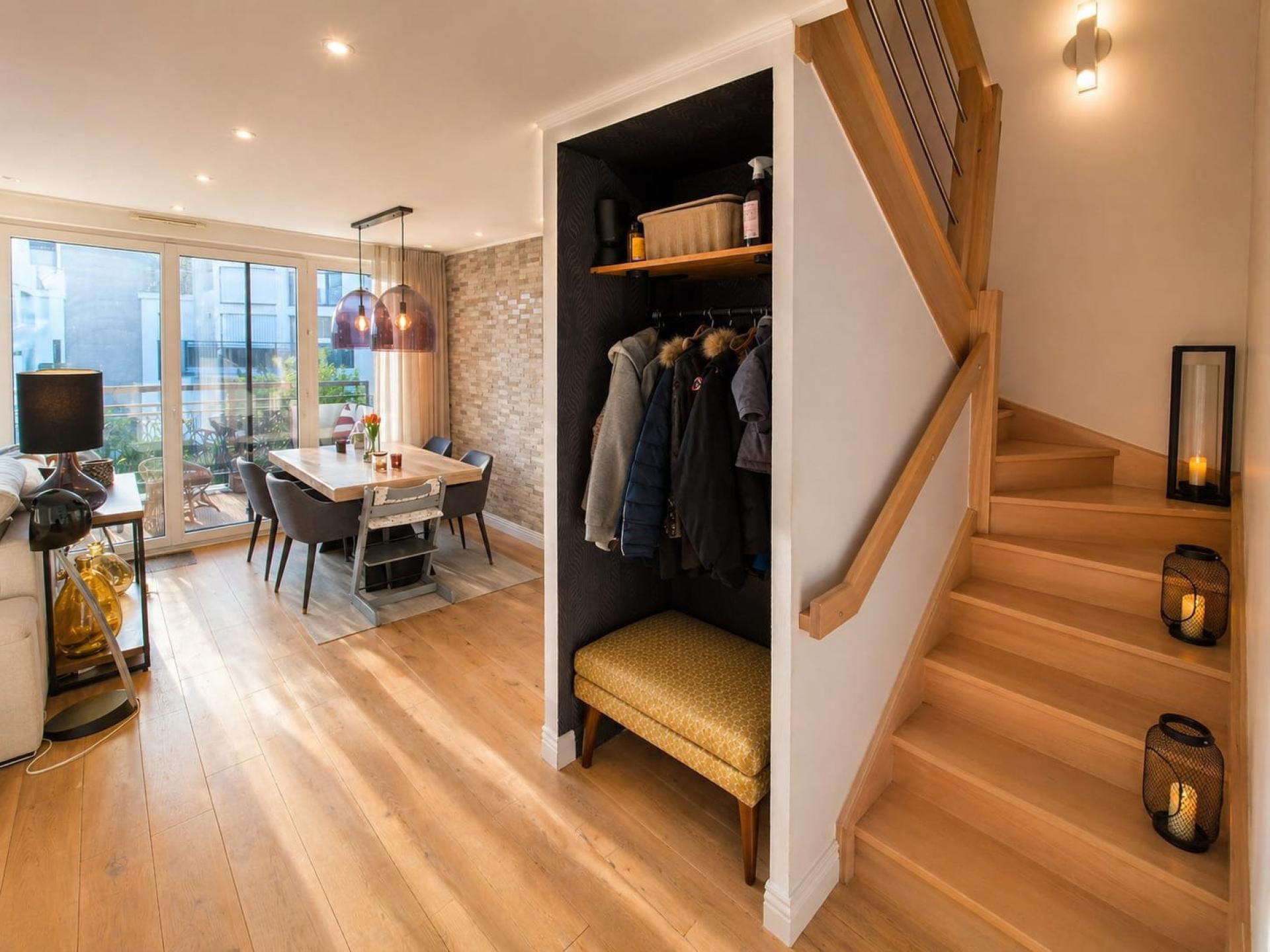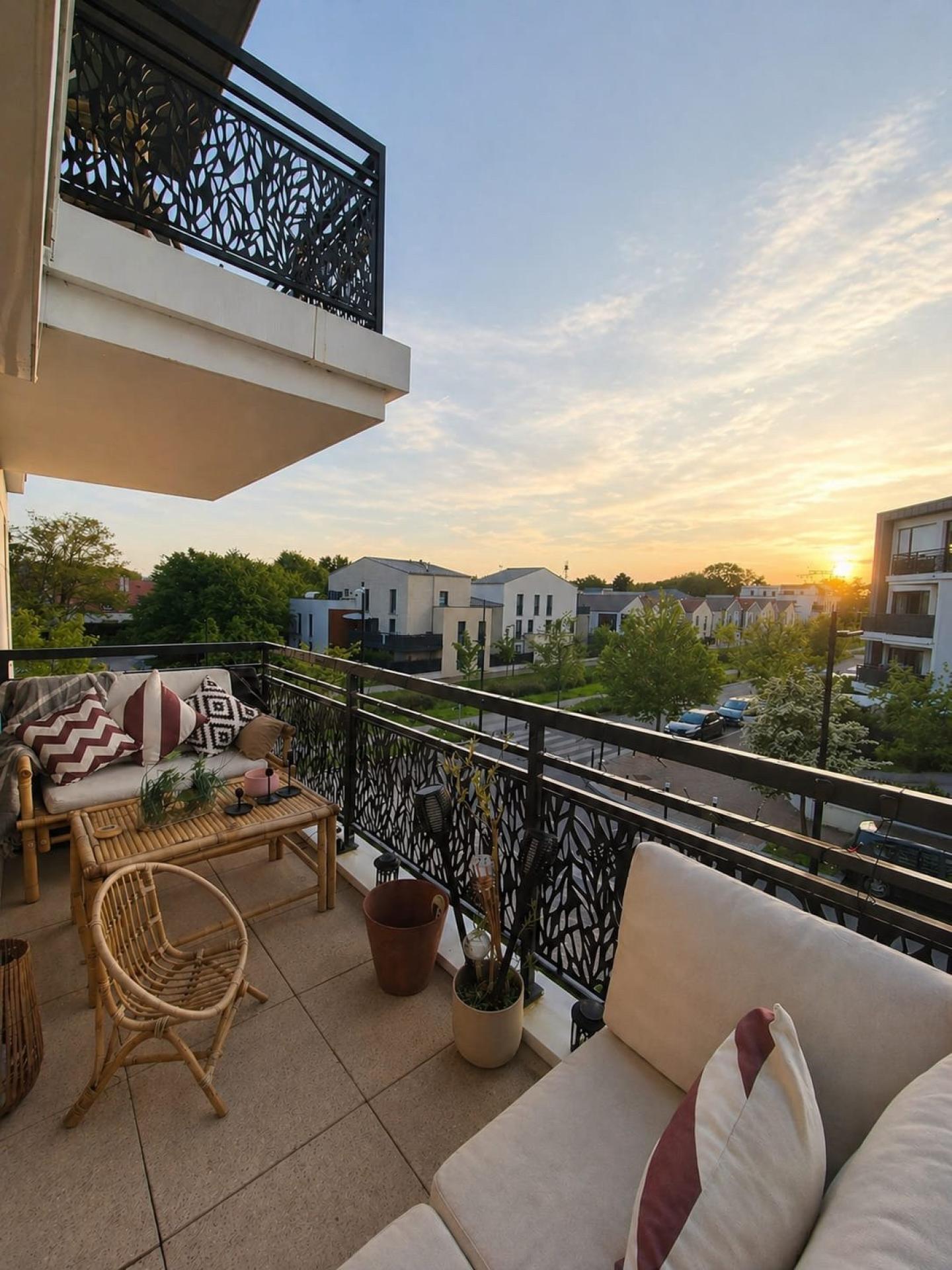 Entre les deux terrasses et la loggia, vous profitez de plusieurs expositions et de moments différents au fil de la journée, avec une vue dégagée sur le parc. Café du matin, dîner d’été, coin lecture… chacun y trouve sa place.