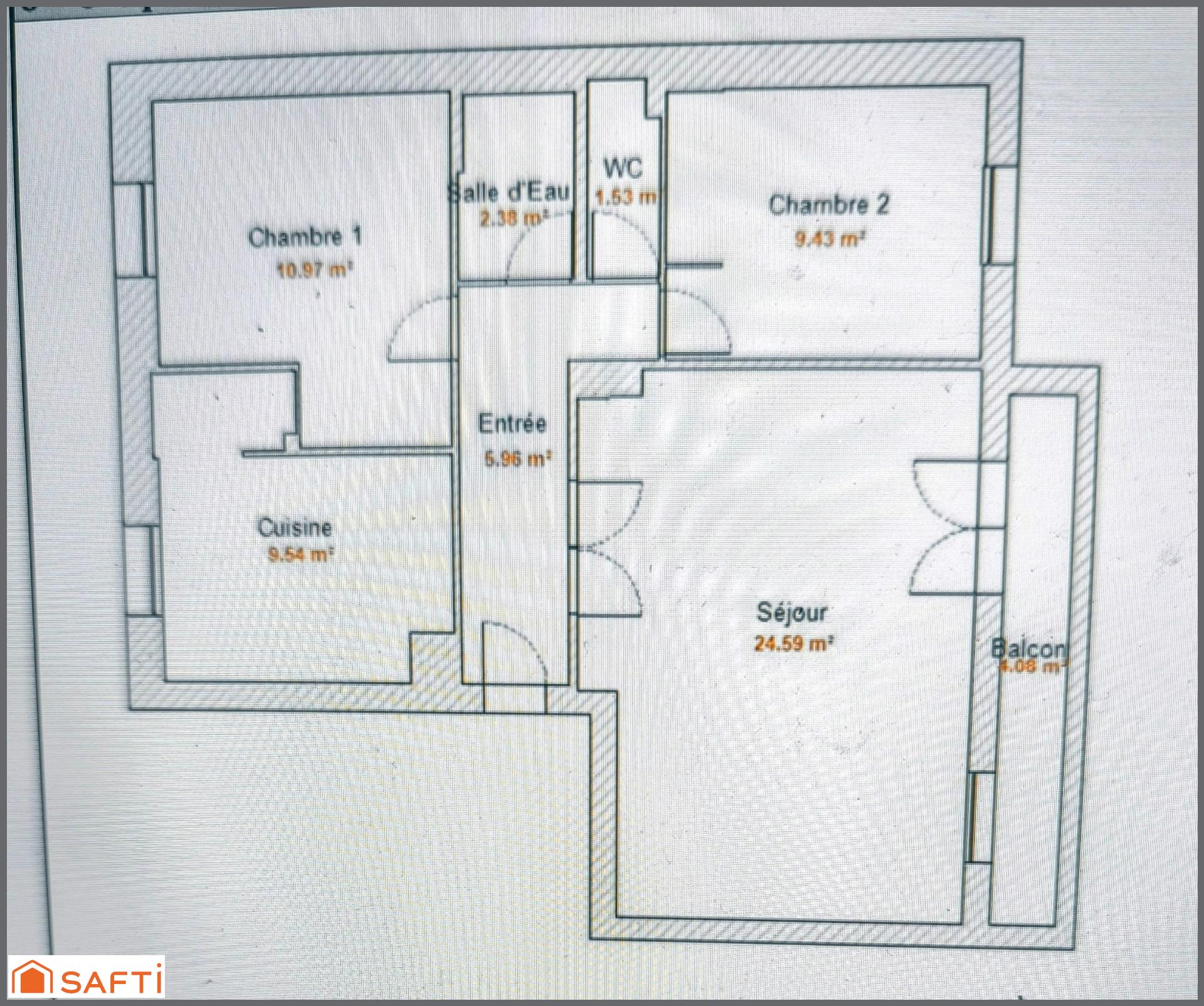Aperçu de cet appartement à vendre de 4 pièces et 63 m²