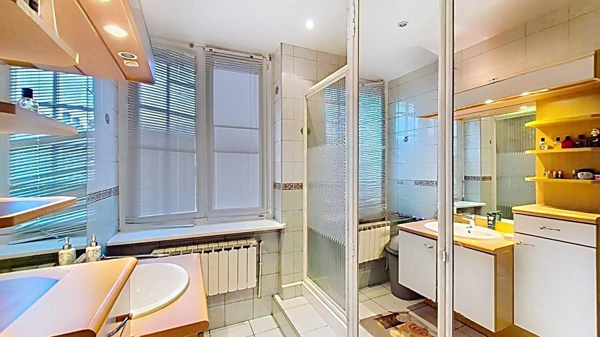 -Une belle salle de bain fonctionnelle et épurée, offrant un espace agréable au quotidien