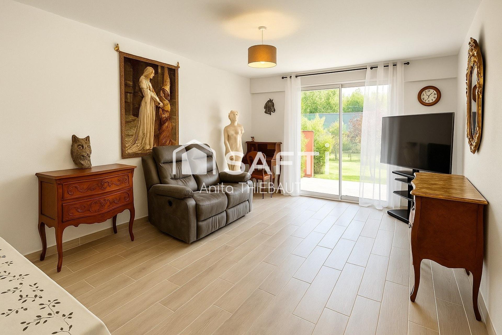 À l’extérieur, vous profiterez d’un jardin privatif de 255 m², véritable prolongement de l’espace de vie, idéal pour les repas en plein air, les loisirs ou la détente. Une terrasse exposée plein sud complète cet espace baigné de lumière.