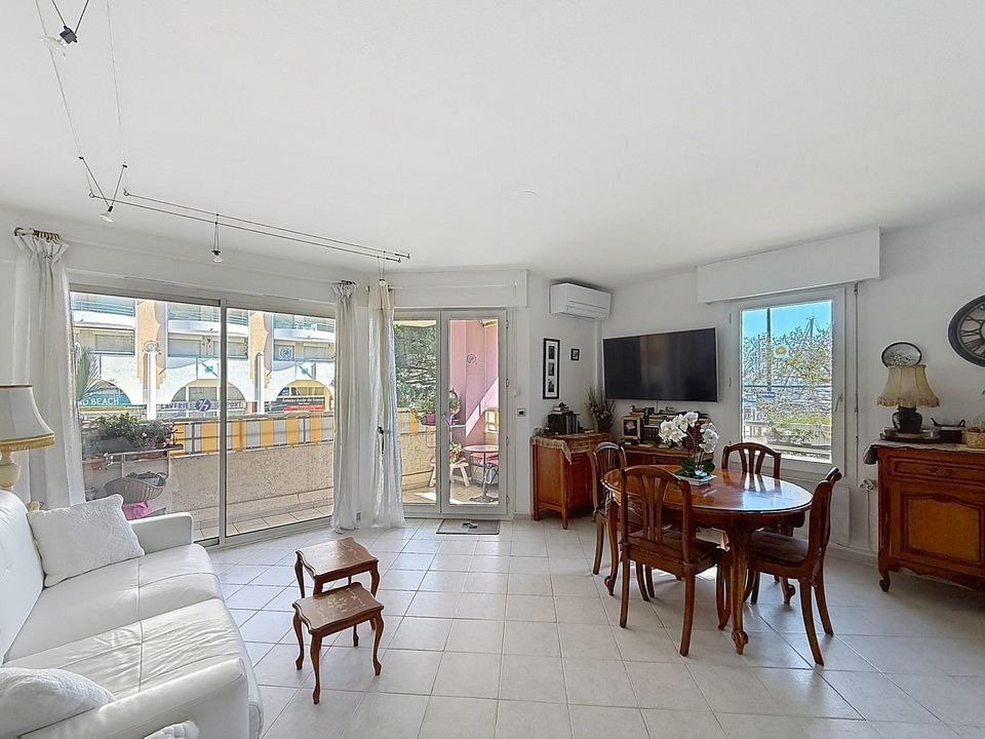 PORT-FREJUS- Dans une résidence sécurisée face au port et aux plages de la base nature, appartement 3 pièces de 60m2 avec JARDIN et TERRASSE. Il se compose d'une entrée avec placard, d'un lumineux séjour climatisé offrant une vue sur la mer et le port, d'une cuisine équipée ouverte sur le séjour, d'un dégagement avec placard, d'une première chambre avec dressing, d'une salle d'eau, d'un WC indépendant et d'une seconde chambre avec placard.