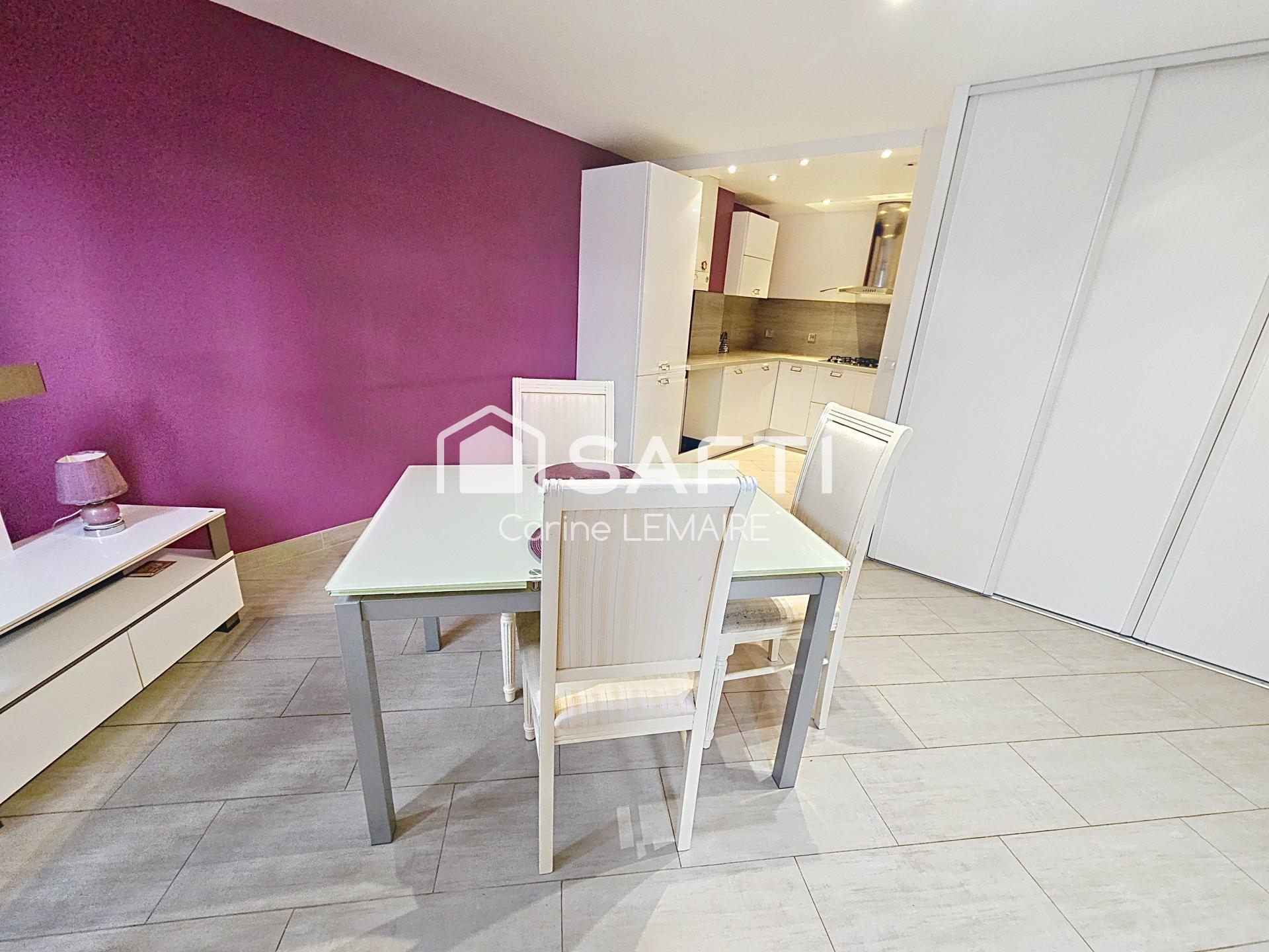 Entièrement refait à neuf, il se compose d’une entrée, d’une grande pièce à vivre lumineuse de 25 m² avec placards intégrés et cuisine aménagée et équipée, de trois chambres spacieuses et d’une salle d’eau avec WC. Le bâtiment a également été ravalé récemment.