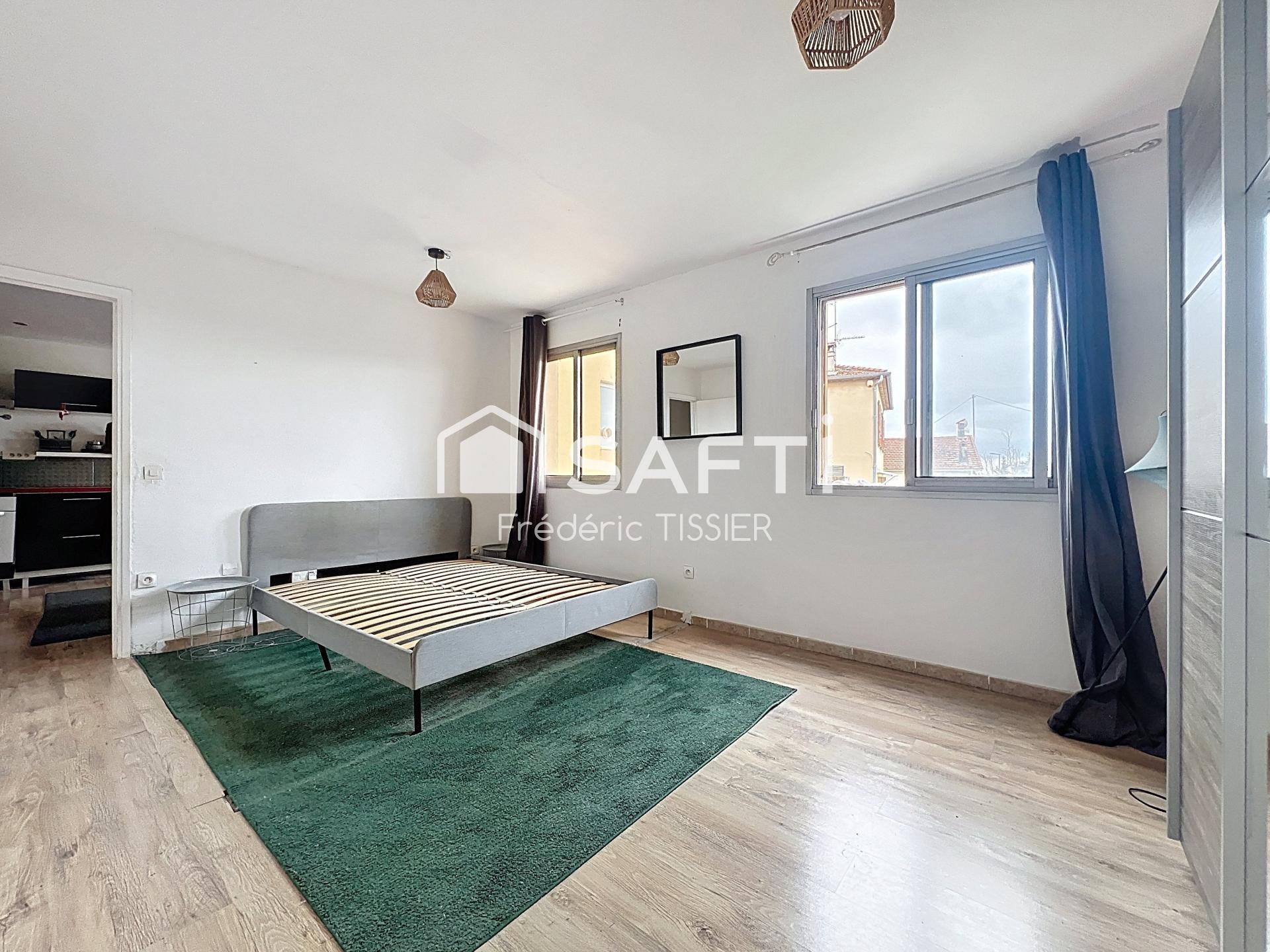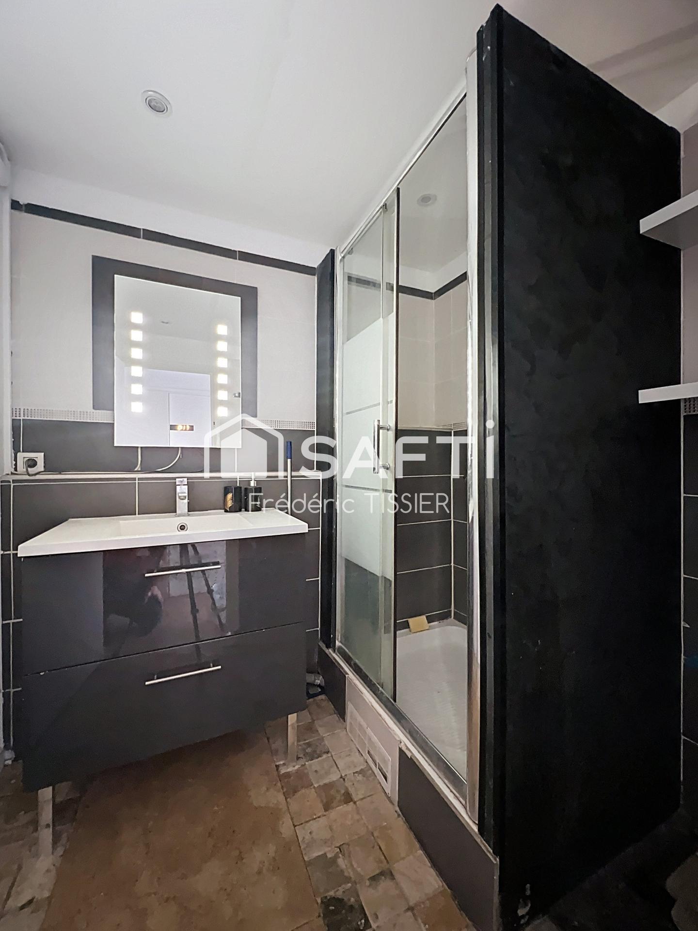 A Rénover, Grasse proche Rond commissariat central, Grand T2 (Ancien 3 pièces : chambre divisée en 2) de 44 m2 carrez comprenant également une loggia (fermée) de 6 m2. Soit 50 m2 habitable en exposition Sud-Est avec dégagement jusqu'à la mer. Appartement très lumineux comprenant une entrée avec placard, un w-c indépendant, une salle de douche et la pièce de vie avec une cuisine ouverte, le séjour prolongé de la loggia. Cette loggia peut à nouveau être ouverte afin de pouvoir installer une climatisation. La grande chambre de 17 m2 peut permettre plusieurs possibilités : création de 2 petites pièces ou un bel espace nuit (chambre avec dressing et bureau,...)