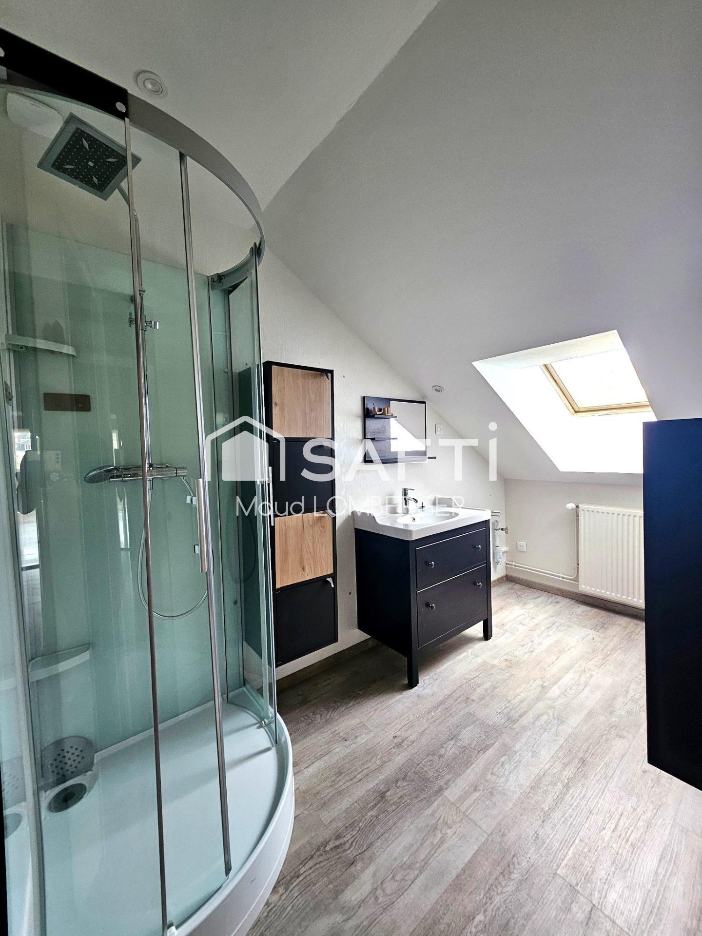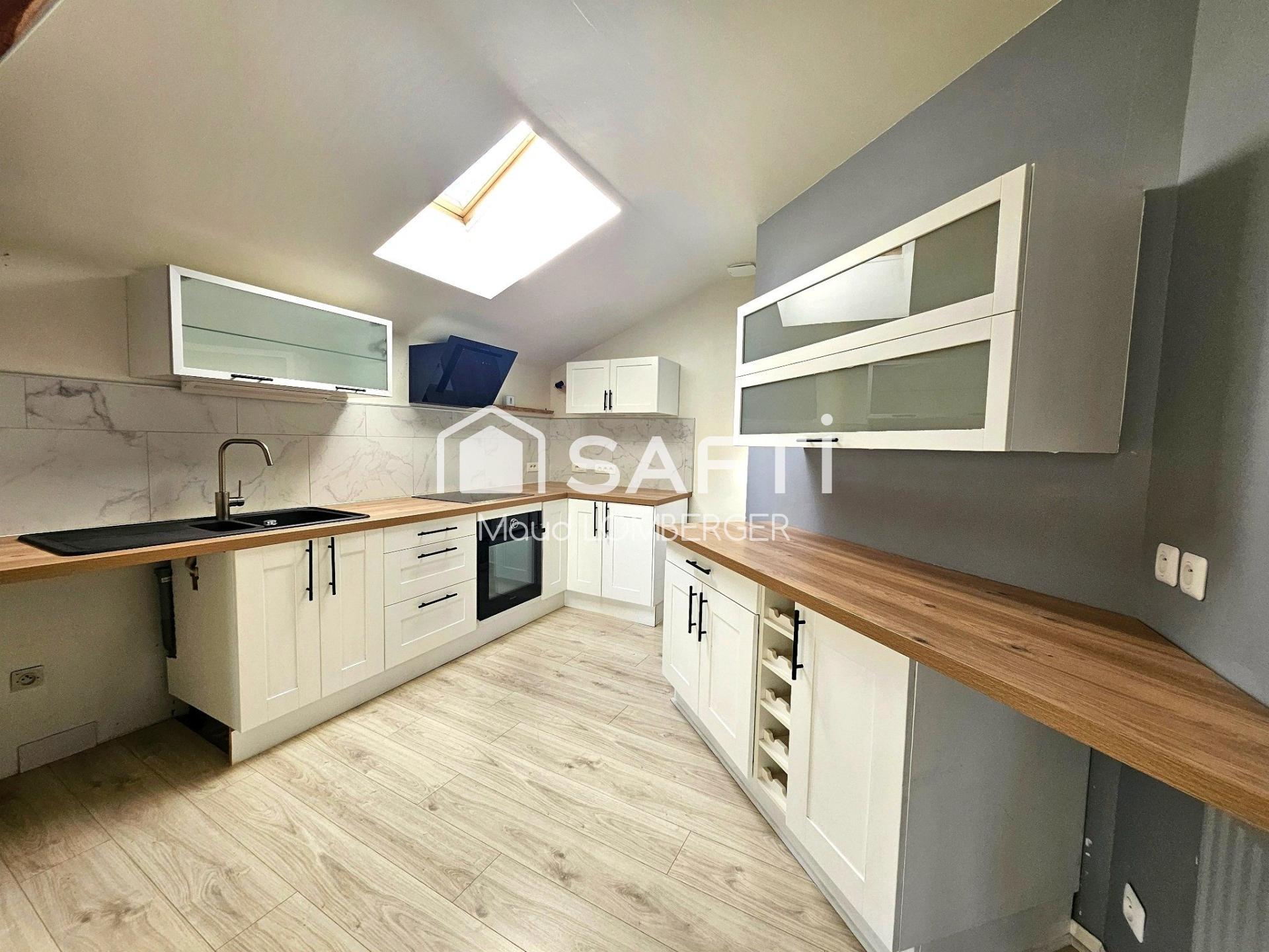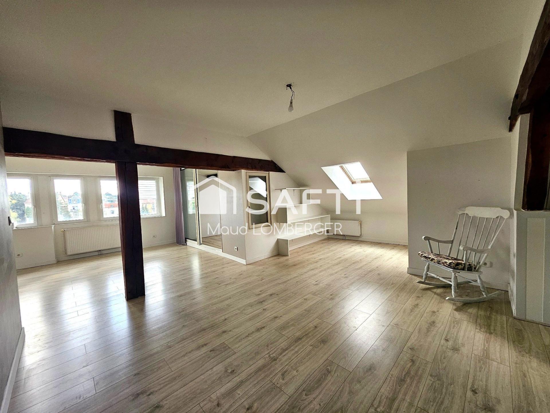 Installé au dernier étage d’une petite copropriété, ce bien développe 76 m² habitables (103 m² au sol) et séduit immédiatement par ses volumes généreux, sa lumière naturelle et son atmosphère chaleureuse sous toiture.