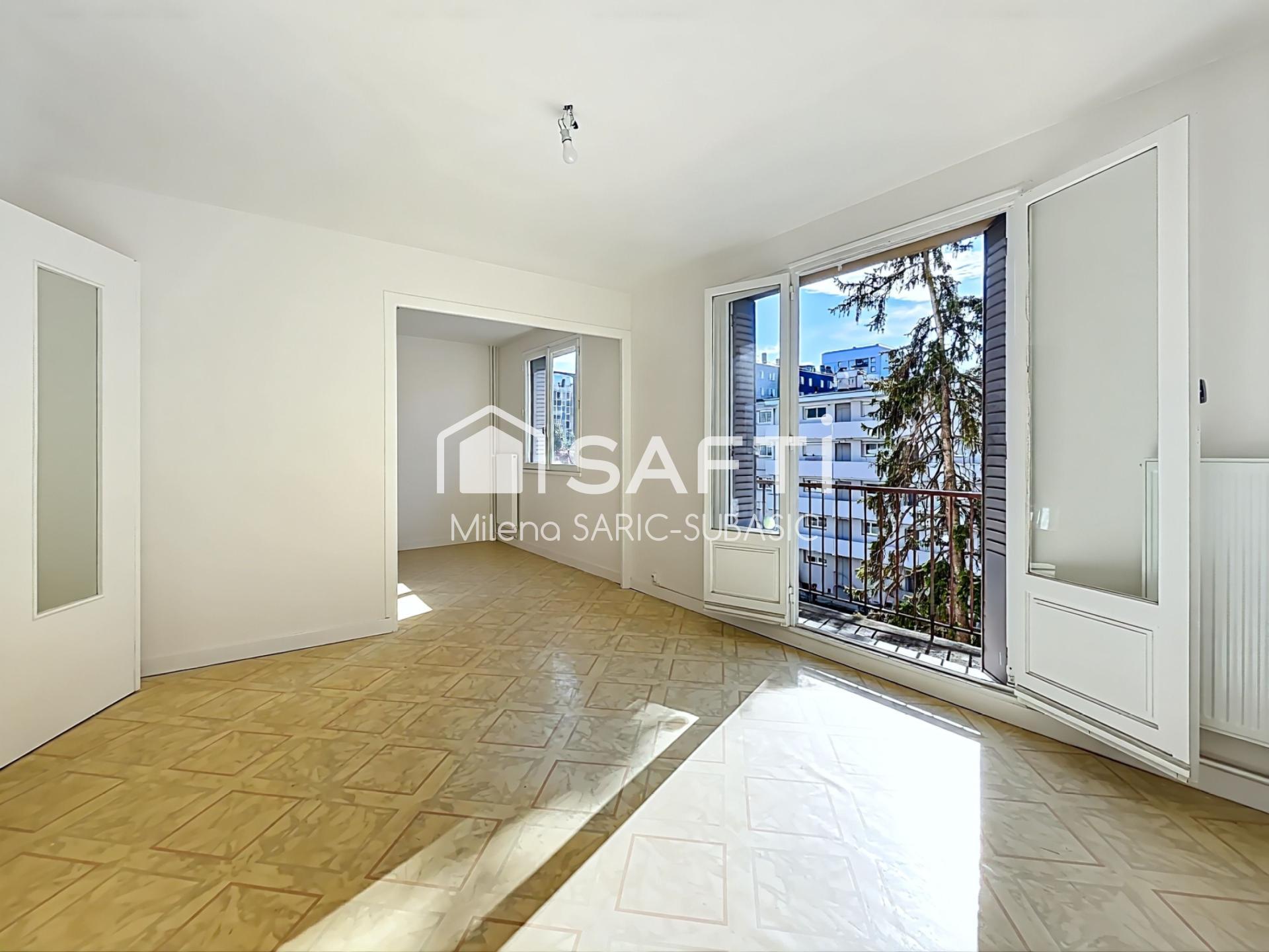 Au 3e étage d’une copropriété bien entretenue avec ascenseur en demi-niveau, cet appartement traversant de 63 m² séduit par sa luminosité et son agencement optimisé. La pièce de vie, organisée en double salon, permet différentes configurations (séjour, salle à manger, bureau ou création d’une chambre supplémentaire). La cuisine indépendante, entièrement équipée, dispose d’une loggia fermée, un véritable espace supplémentaire pouvant servir de buanderie ou de rangement.