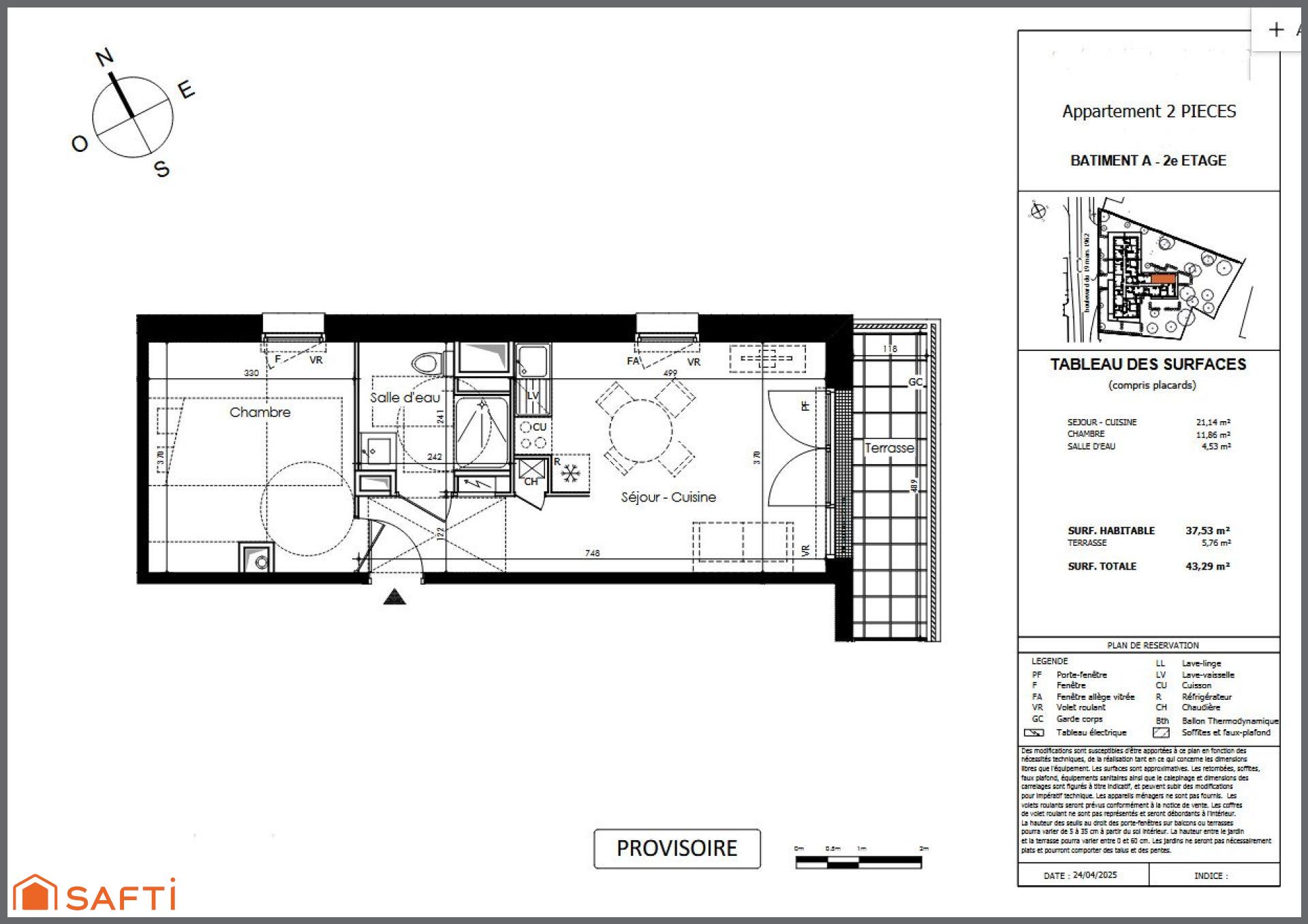 A 15 mn à pied des remparts dans une future résidence moderne et sécurisée, un appartement T2 de 37,53m2 au 2ème et dernier étage avec ASCENSEUR comprenant : une pièce de vie de 21m2 avec coin cuisine, le tout s'ouvrant sur un BALCON exposé SUD-EST, une chambre de 12m2, une salle d'eau avec wc. Deux emplacements de stationnement complètent ce bien. Local à vélos commun. Disponibilité prévisionnelle 2T2027.Faibles charges estimées à 800 €/an . Plans, informations et rendez-vous sur demande. Photos de synthèse non contractuelles, illustrations d'ambiance.