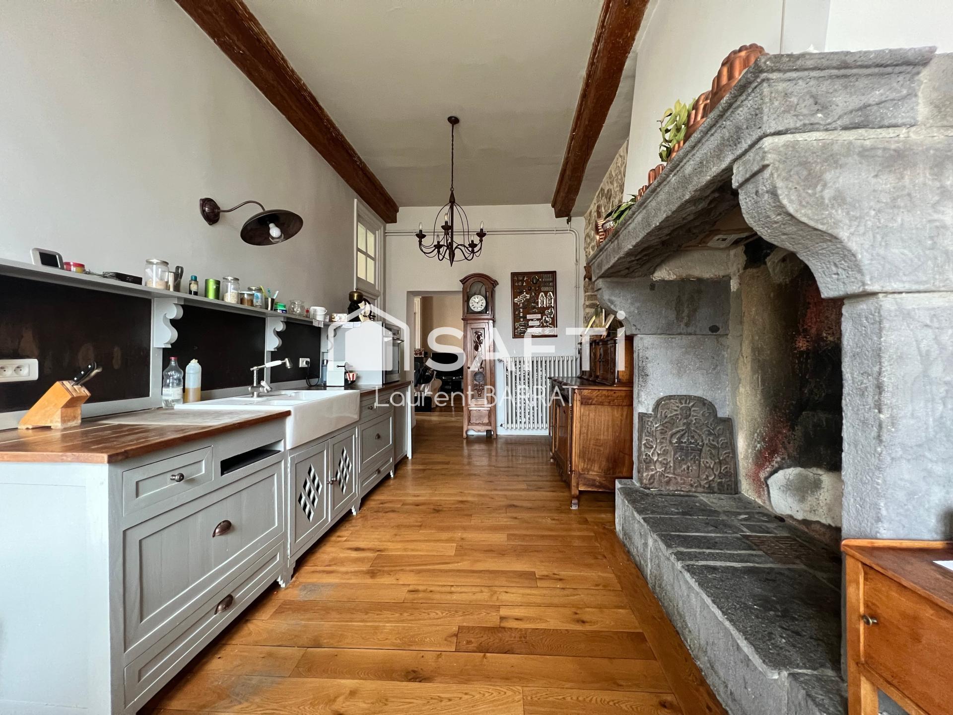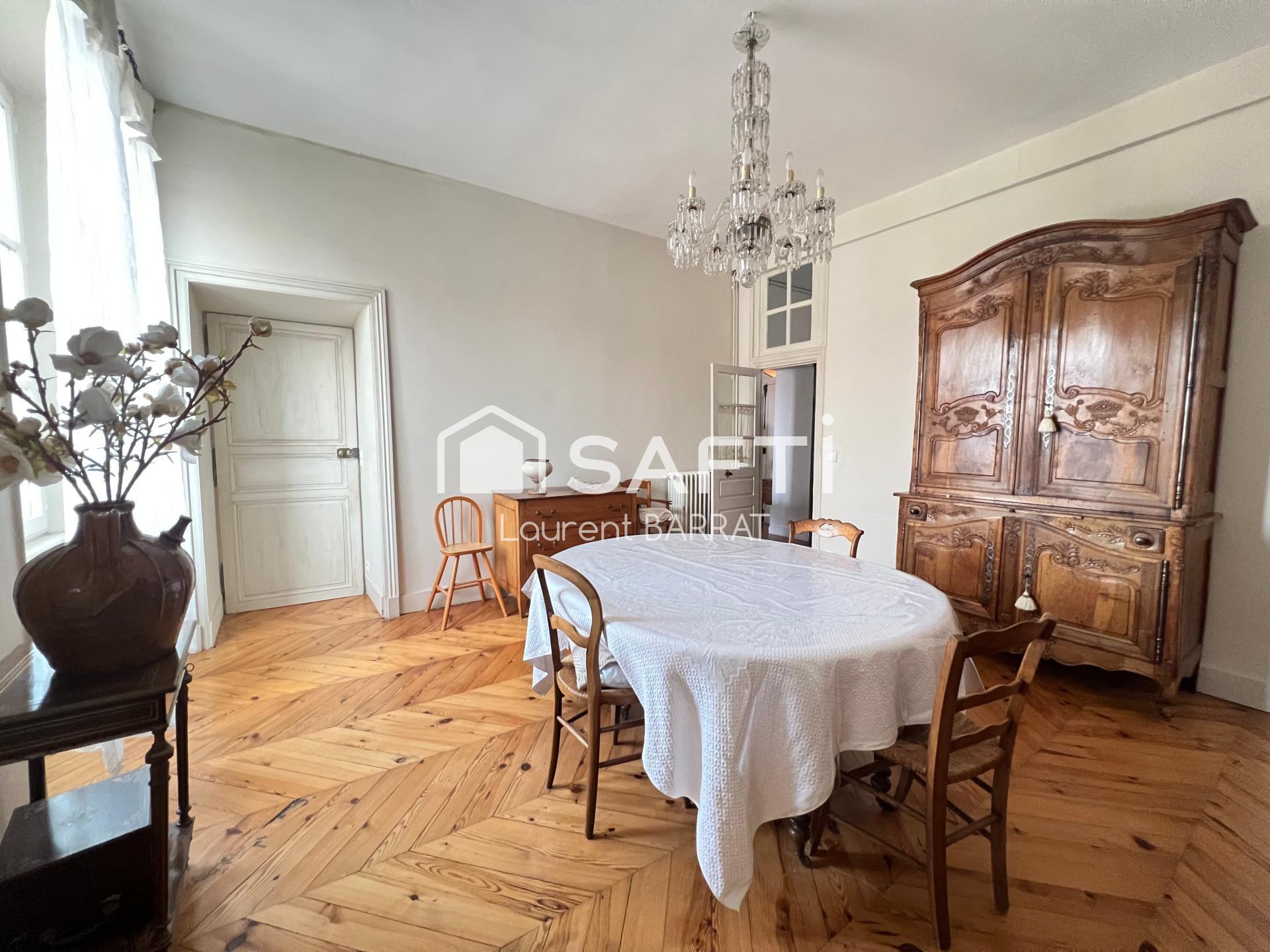 Niché au 2ème et dernier étage d'un ancien hôtel particulier du XVIIIème siècle, ce magnifique appartement développe 230 m² habitables. Plafonds à la Française, cheminées en pierre de Volvic ou en marbre, parquets en point de Hongrie, tomettes... il a conservé de nombreux éléments d'époque. C'est par un vaste hall d'entrée que vous pénétrez dans ses grands volumes, typiques de ces anciens logis. Une grande cuisine dinatoire jouxte une arrière cuisine et la salle à manger. Le salon principal est majestueux avec ses poutres apparentes et sa douce luminosité. Un second salon, plus confidentiel, peut faire office de bureau ou de bibliothèque. Quatre chambres, dont une de plus de 28 m² avec dressing, aggrémentent l'appartement, ainsi qu'une belle salle de bains, une salle d'eau, une lingerie et une buanderie. De nombreux rangements sont disséminés un peu partout, cachés derrières les boiseries sculptées. Un local à vélos et une cave voûtée complètent ce bien. Pour les amoureux de charme et d'authenticité !