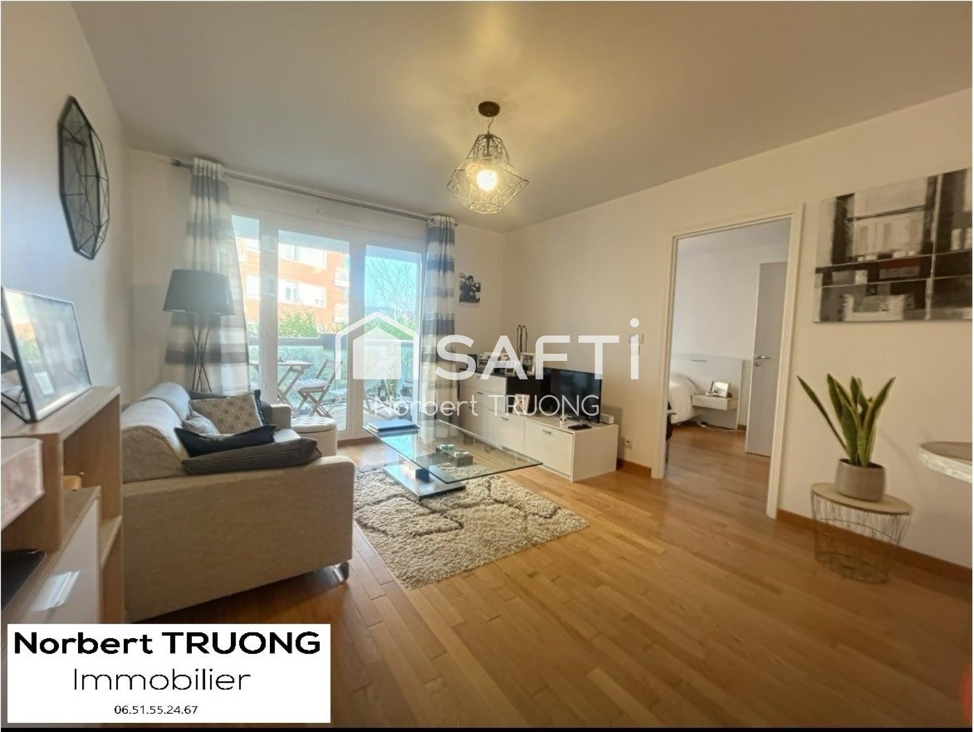 Ce bien de plus de 43 m², en excellent état, se trouve au 1er étage (sur 7) avec ascenseur. Il se compose d'une belle pièce de vie lumineuse donnant sur un balcon de plus de 4 m², d'une cuisine entièrement aménagée et équipée, d’une grande chambre, d’une salle de bains et de toilettes indépendantes.