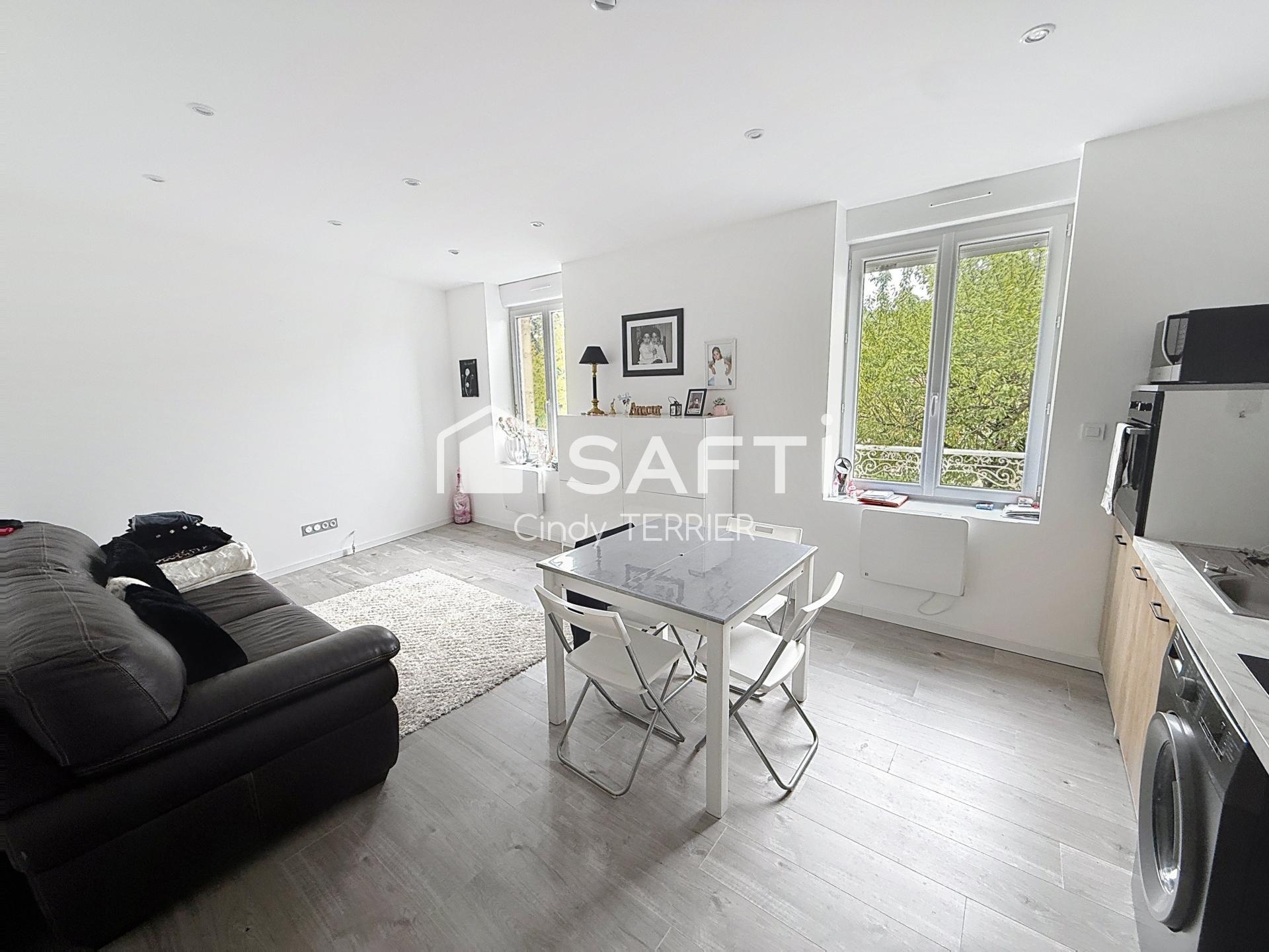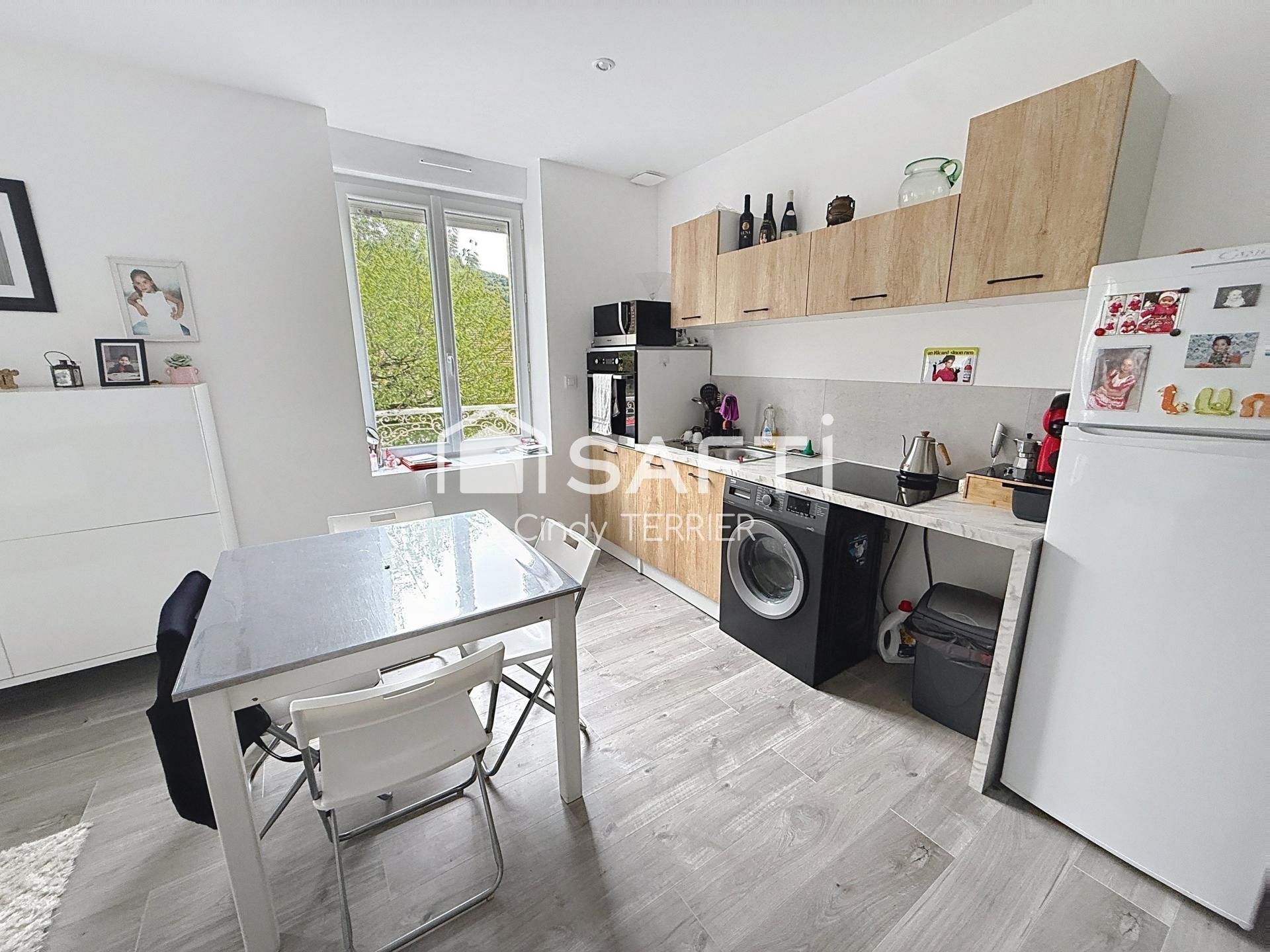 Un appartement T3 d'environ 50 m², entièrement rénové, comprenant au rez-de-chaussée un hall d'entrée, à l’étage une cuisine semi-équipée ouverte sur séjour et au 2éme, deux chambres lumineuses ainsi qu’une salle de bains avec couloir de distribution. Ce logement est actuellement libre d’occupation.