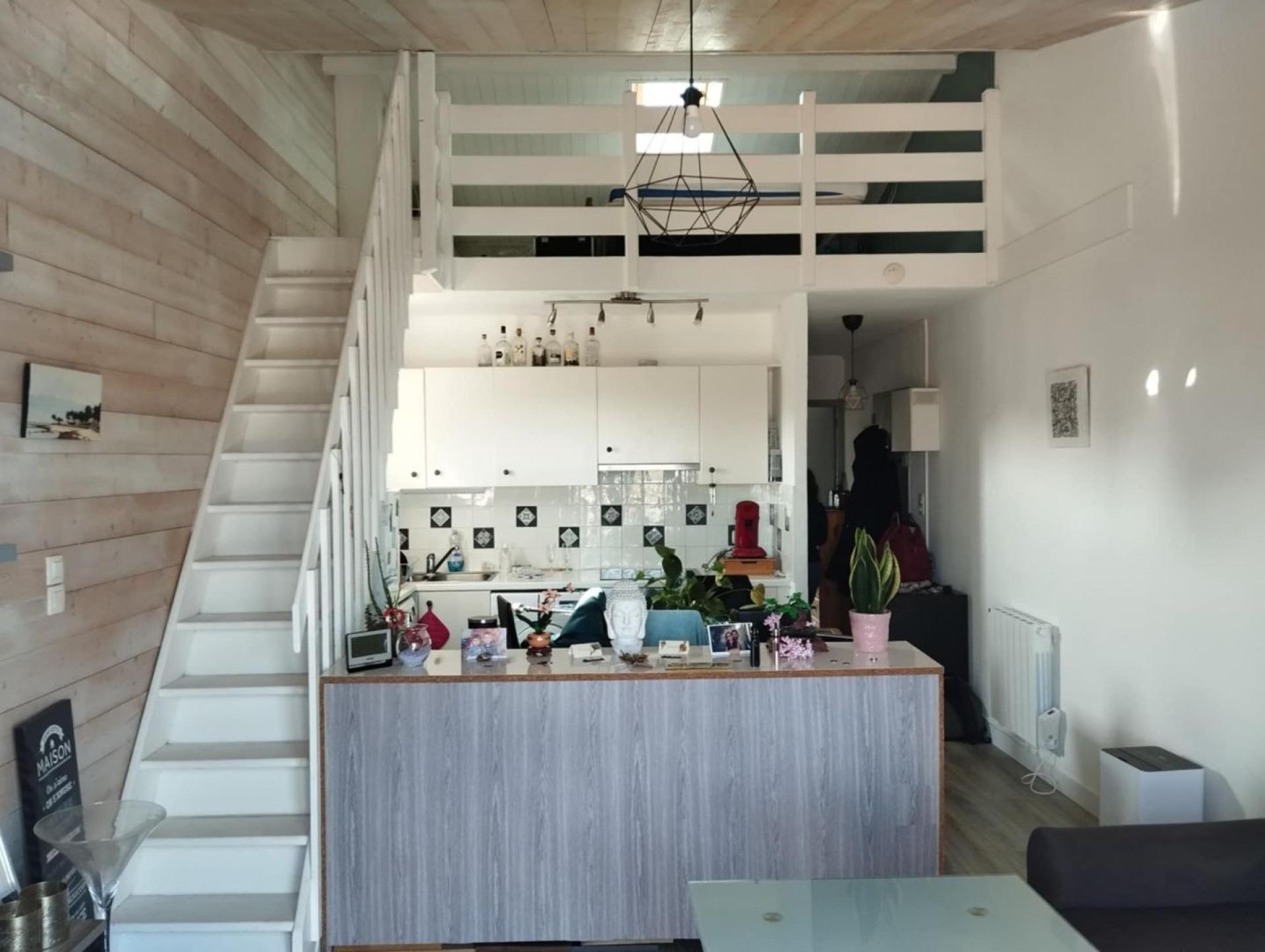 Le plus, une mezzanine spacieuse avec accès par l 'escalier en bois.
