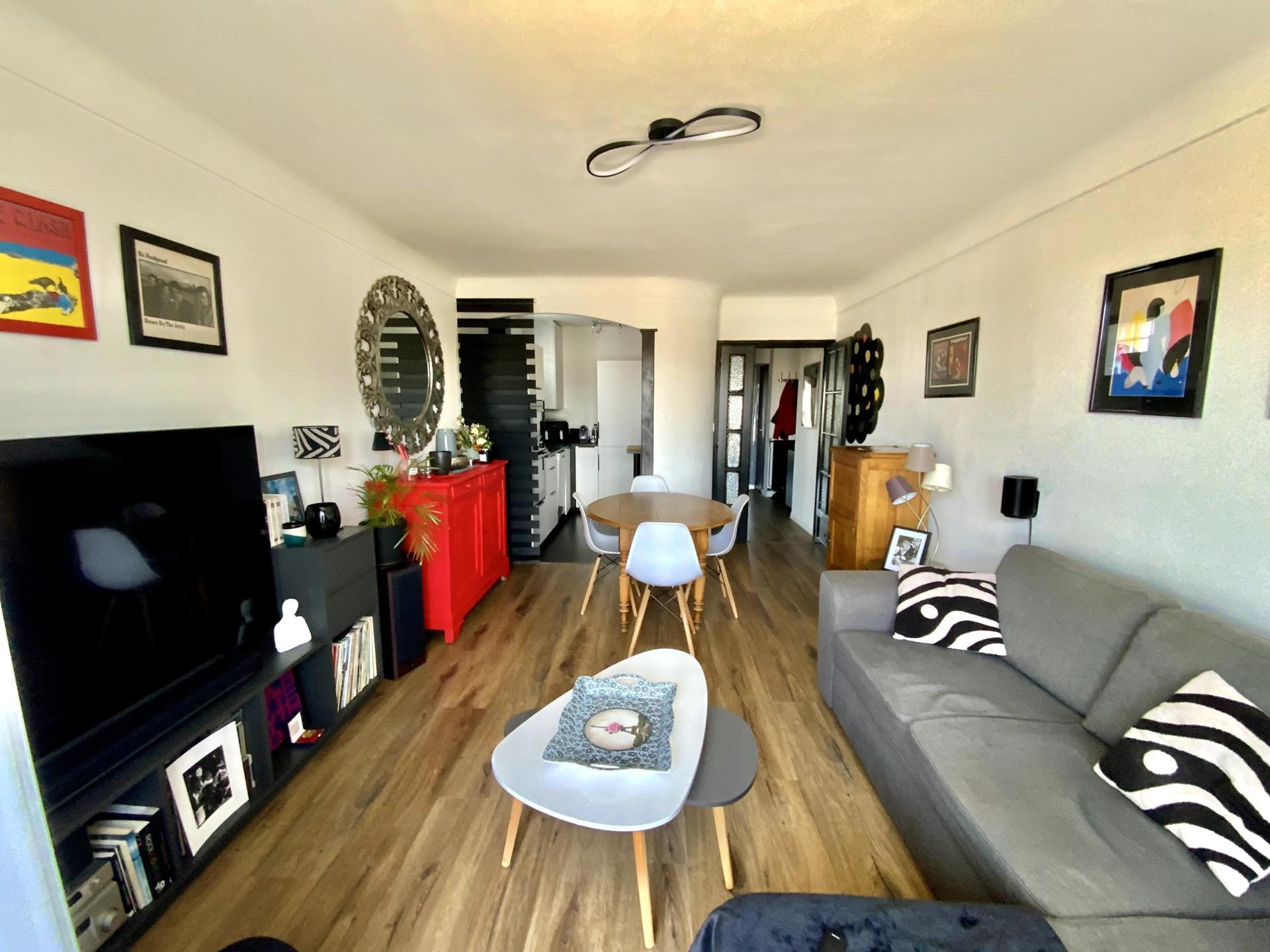 Doté d'un agencement fonctionnel, l'appartement rénové en 2025 de 64 m² comprend un hall d'entrée, un séjour lumineux, une cuisine équipée, deux chambres dont une avec placard, une salle de bain (à finir de rénover) et des toilettes séparées.