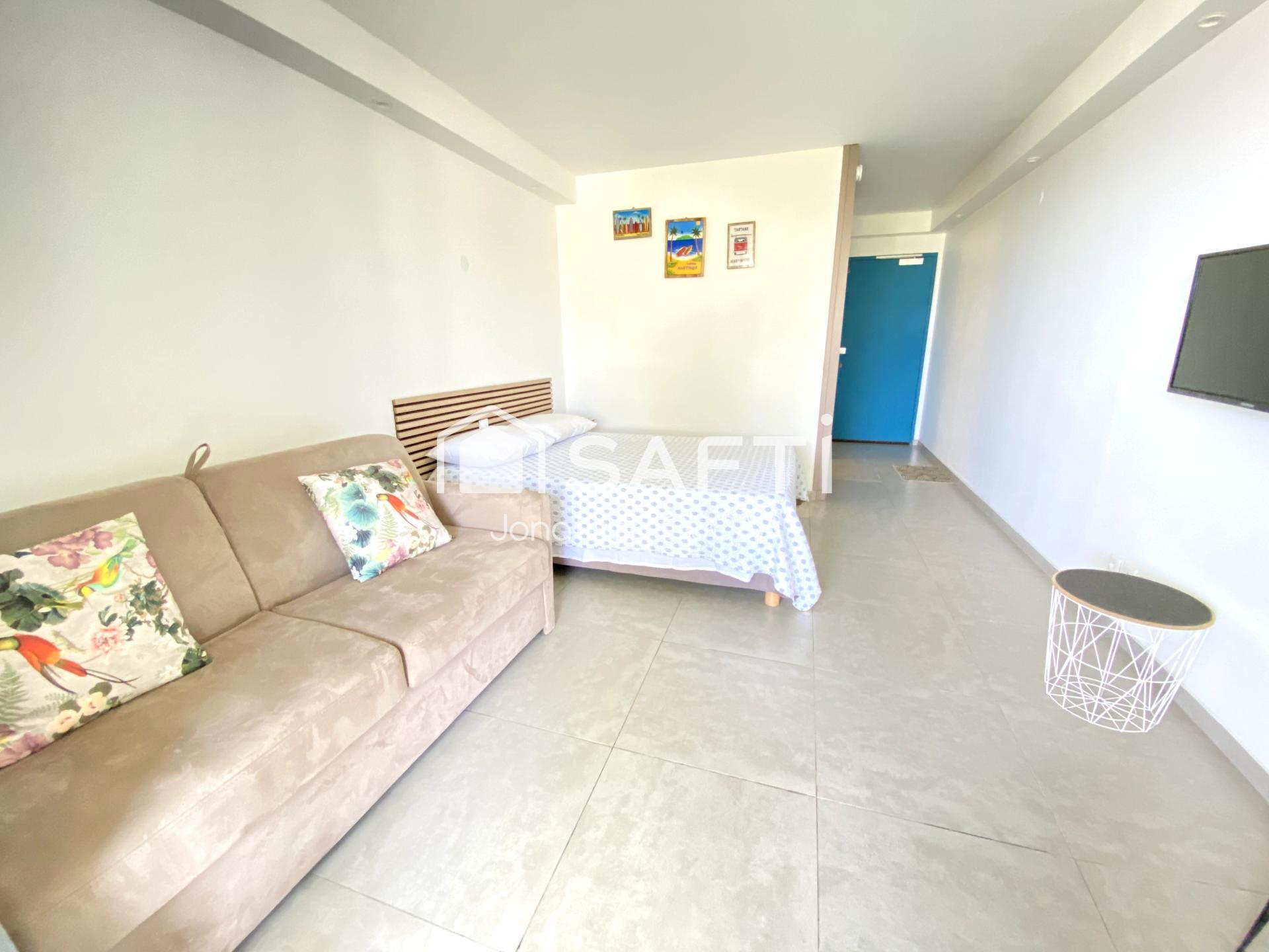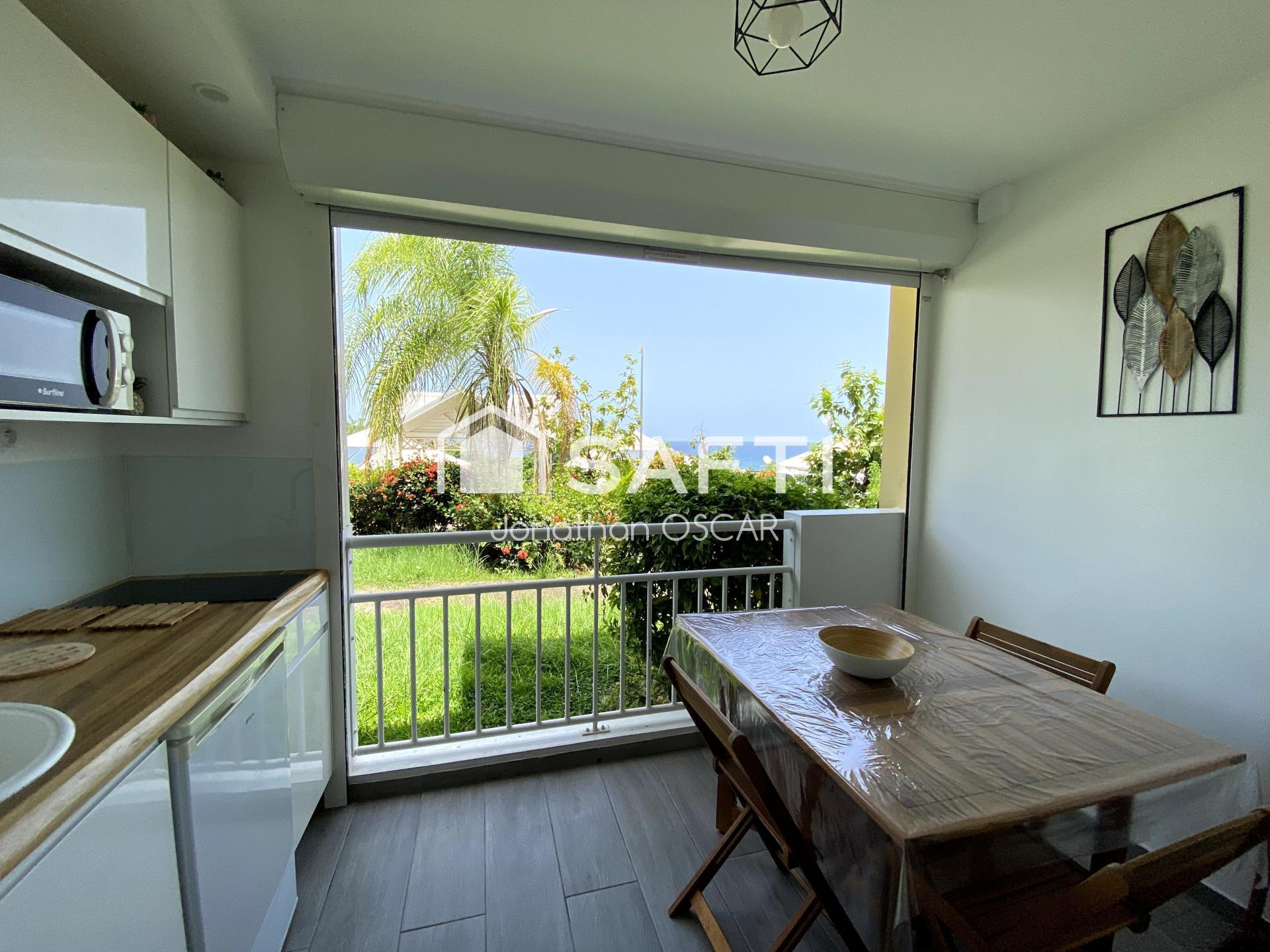 Jonathan OSCAR vous propose en exclusivité, à Trinité, au quartier Tartane, un beau studio avec une terrasse et vue mer, dans une résidence sécurisée avec piscine, à deux pas de la plage, idéale pour la location saisonnière.