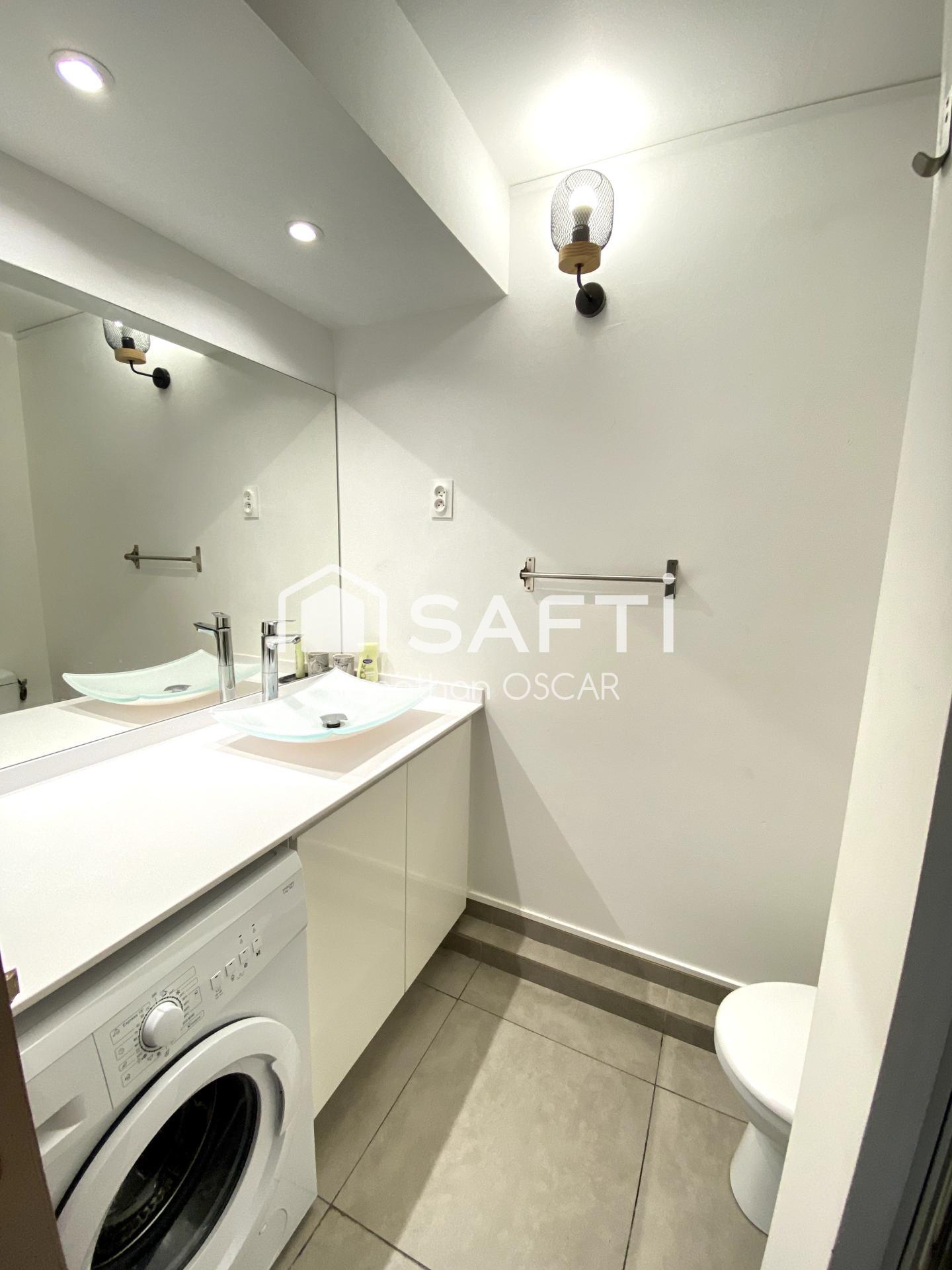 Cet appartement de 27 m2 (21 m2 loi Carrez), au rez-de-chaussée d'une résidence hôtelière, calme et sécurisée, située dans un quartier très recherché, est composé d'un espace de vie lumineux, aéré et climatisé avec un grand lit et un canapé convertible, une cuisine ouverte sur la terrasse et une salle d'eau avec WC.